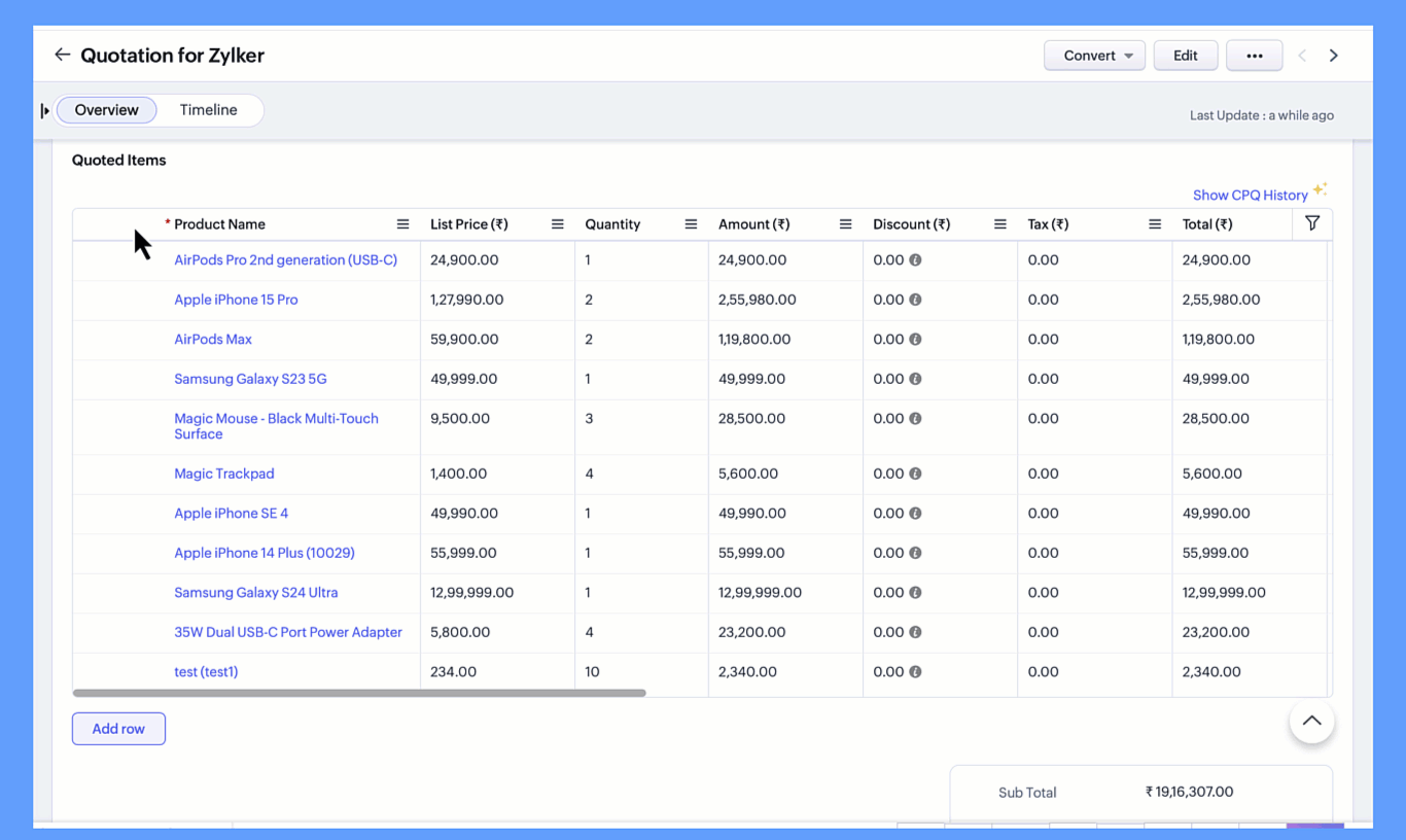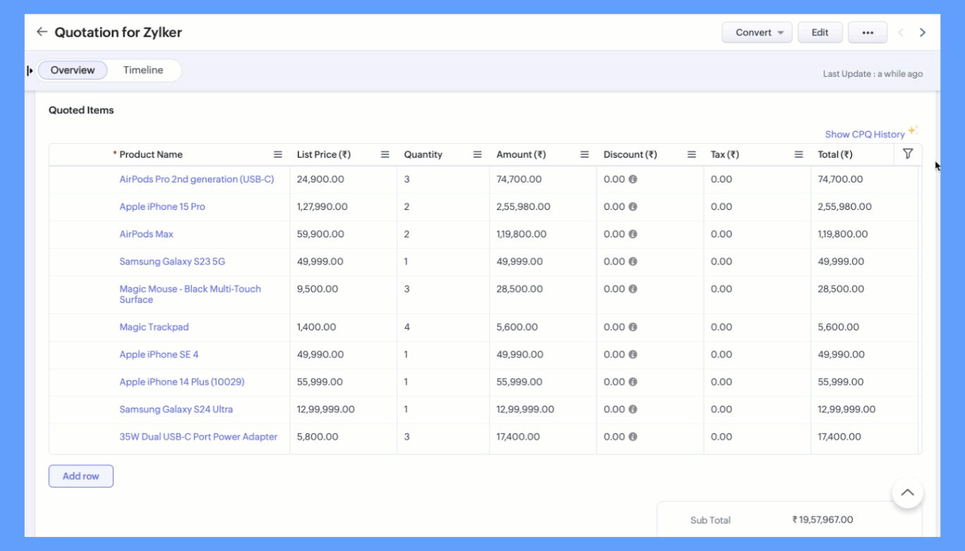 Imagine working on a bulk sales order for Zylker. You might need to add more items to the quote or modify the quantities of the existing items. Previously, making these changes required navigating back and forth between the edit and details pages—a tiresome task.