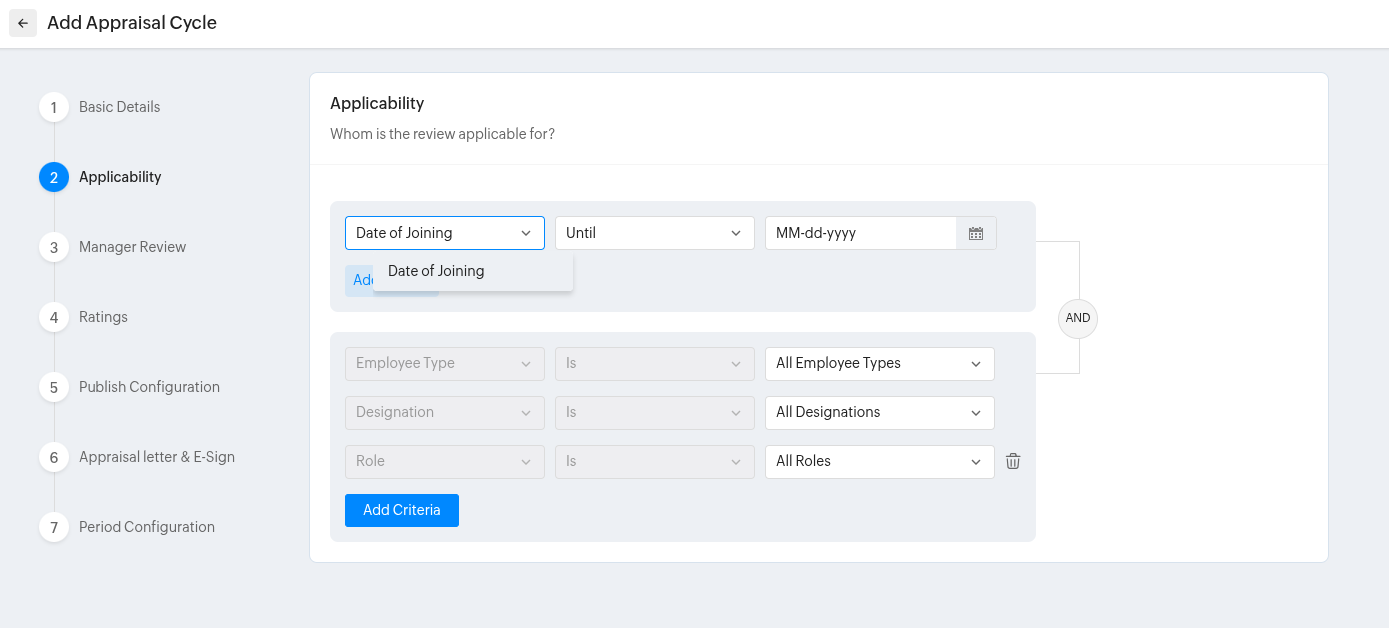 This makes sense on its face. However, one MUST use the Date of Joining criterion as a filter. Why is this? That is not important to me or lots of other people. Why shouldn't the first criterion have every available field rather than just that one random one?