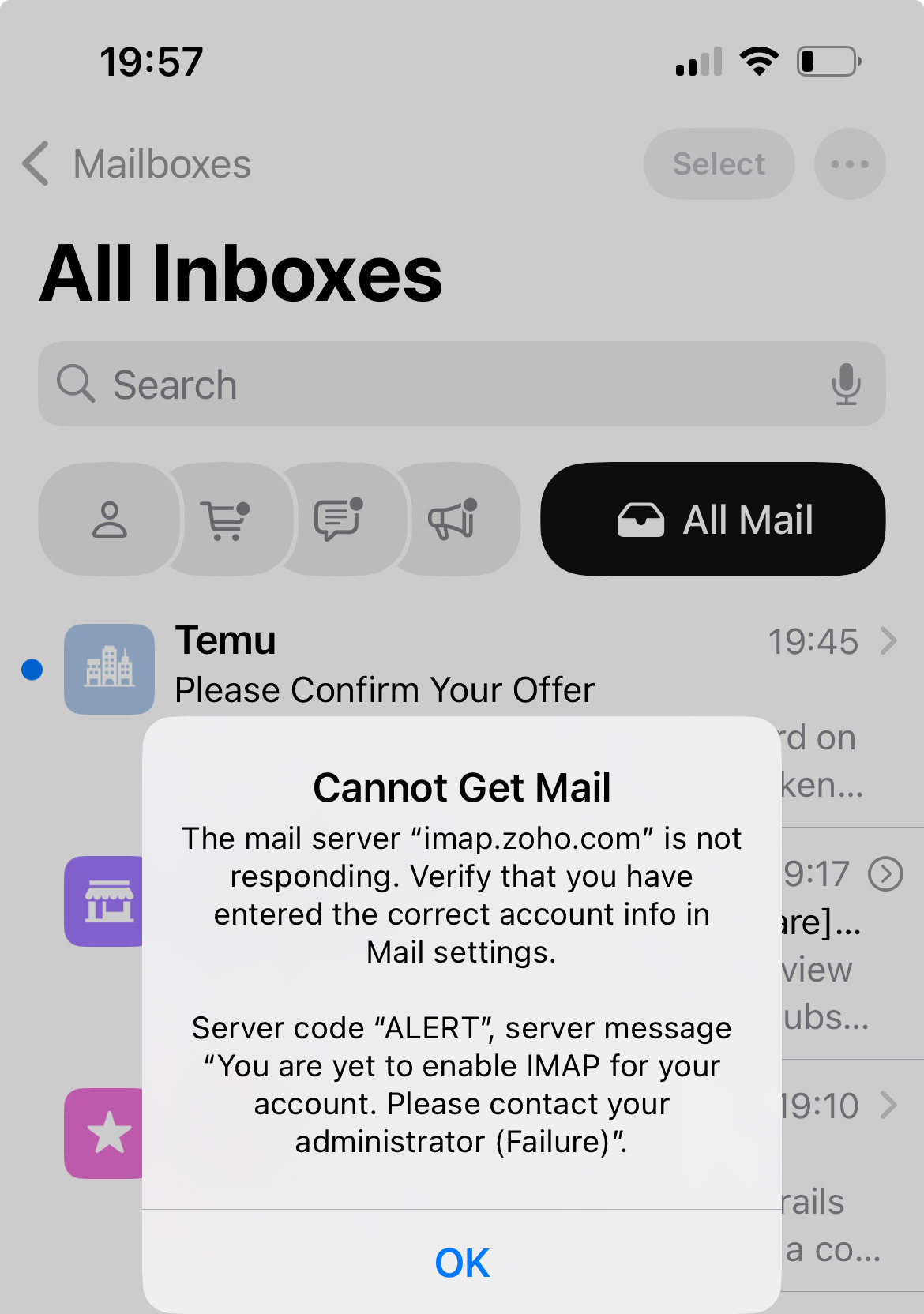 I've been a paid customer for more than 10 years, IMAP was always working fine. But today this is the error I've got on my iPhone: