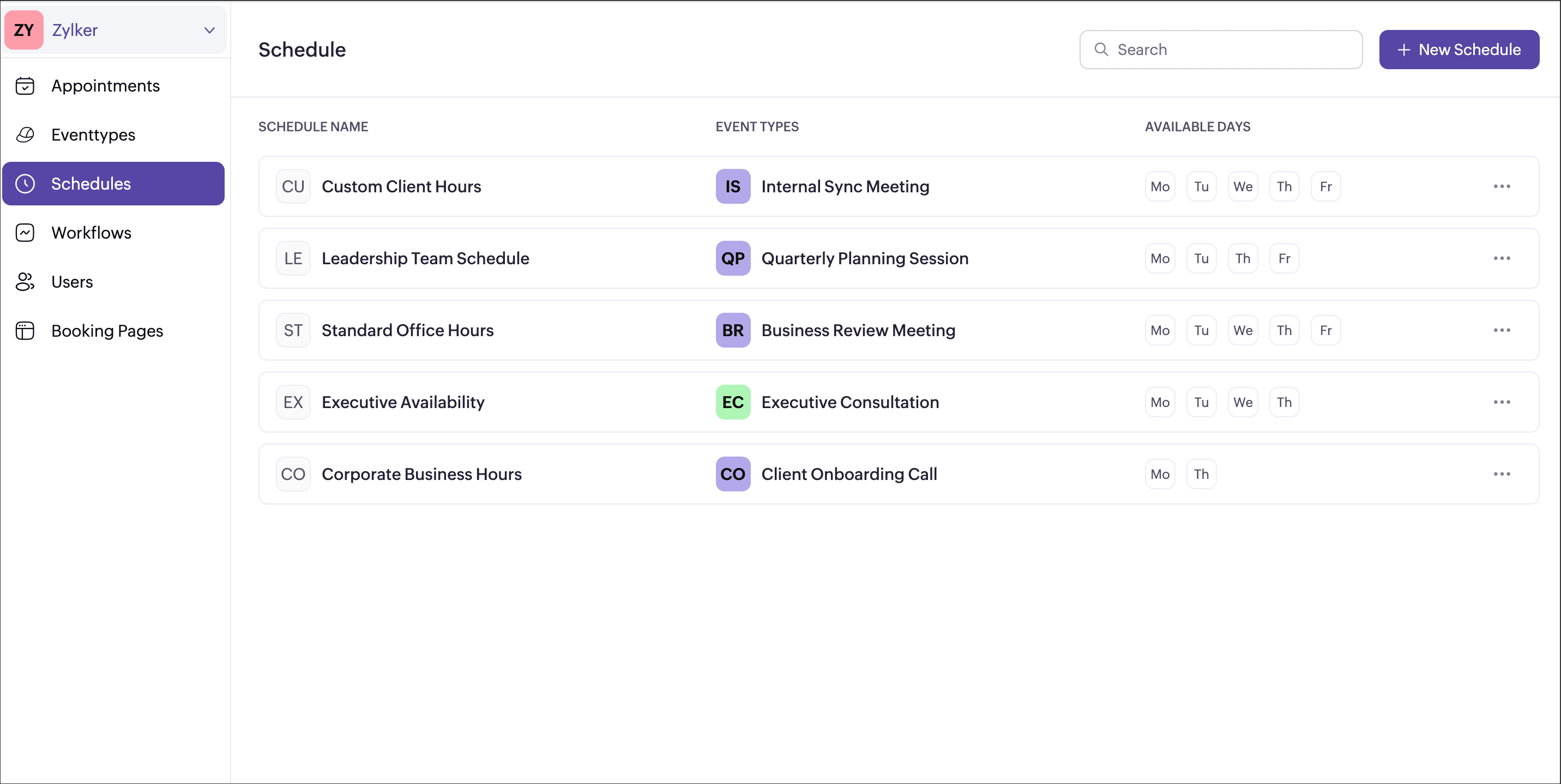 Any updates to the schedule automatically reflect across assigned event types.