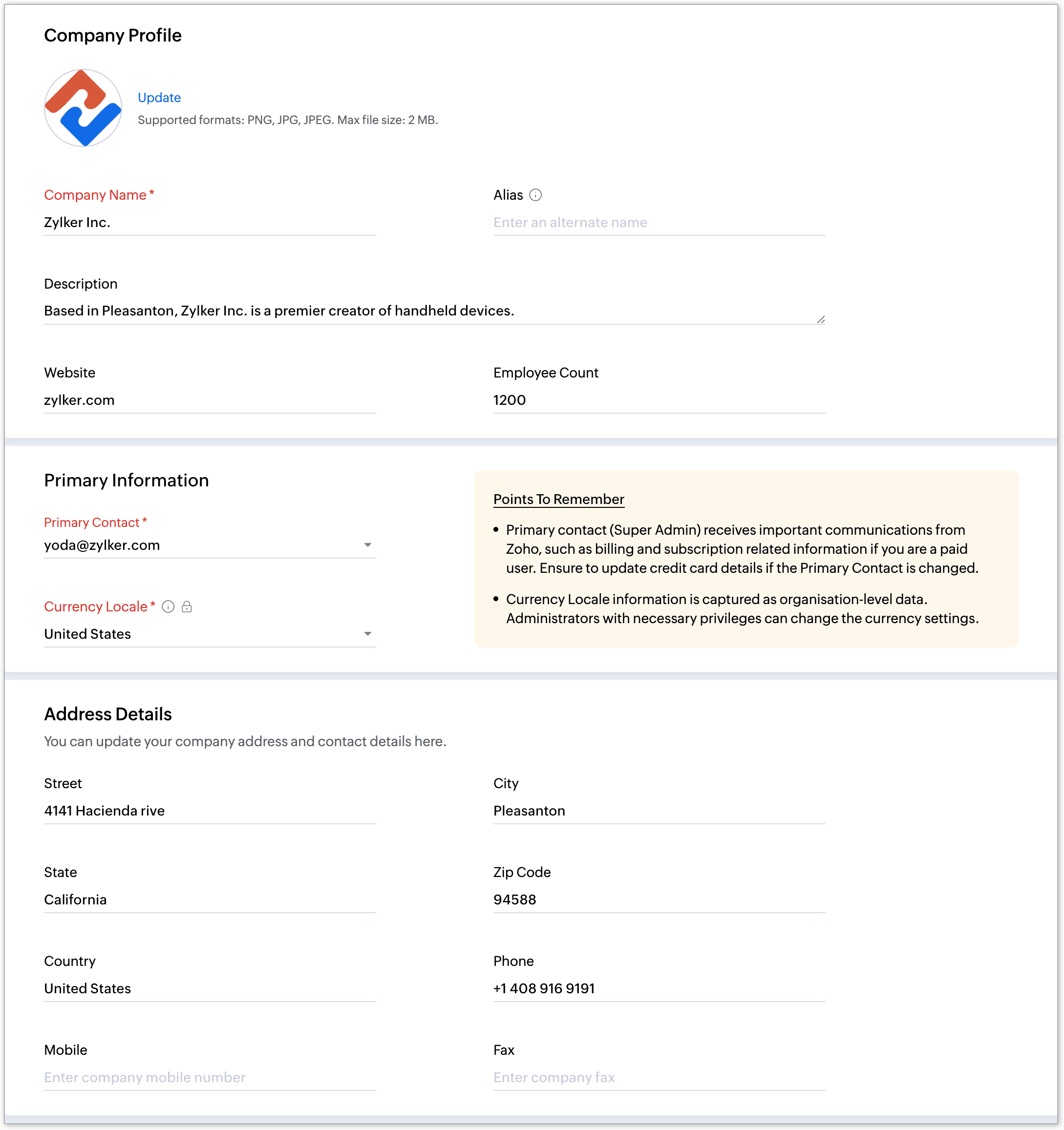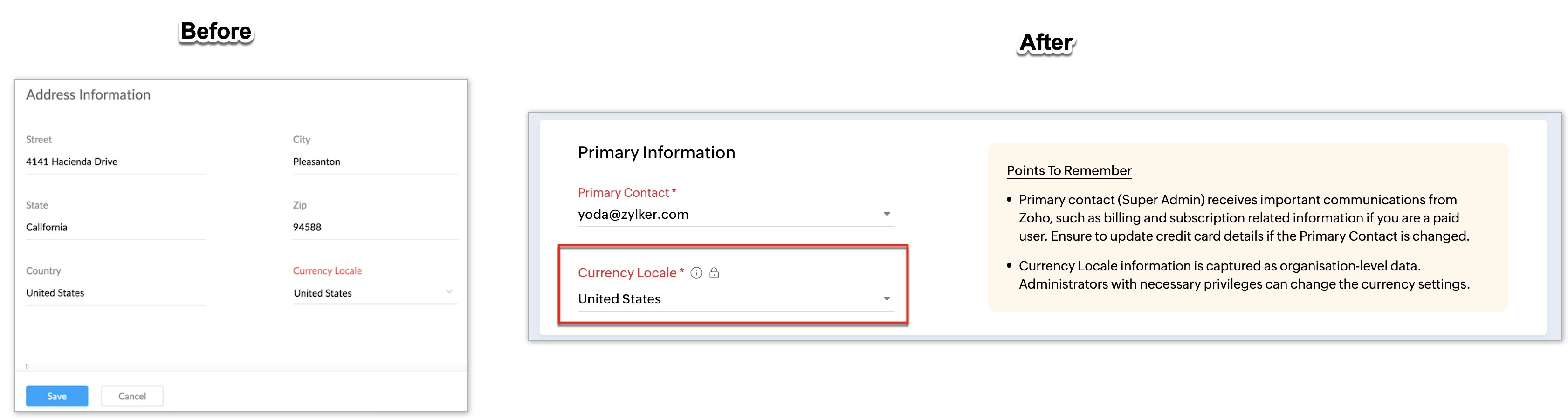 - Currency Locale: This used to be part of the Address Information section, but it has been moved to the Primary Information section for easier access and better organization.