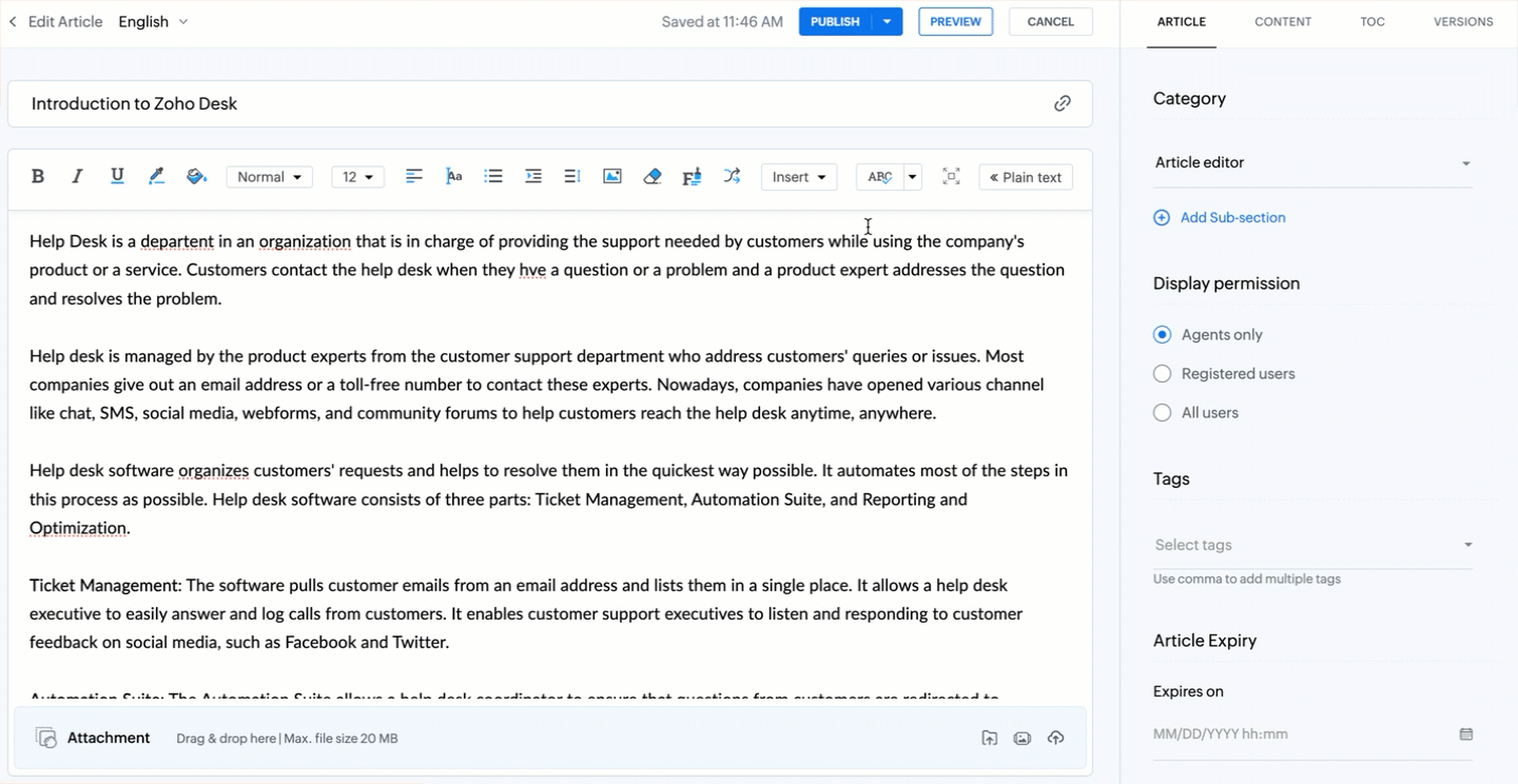 Sometimes writers may have strong knowledge about the subject but may find it challenging to articulate clearly or produce comprehensible, jargon free content. To make the process easier and to ensure consistent, high-quality articles, content analysis tool offers a bunch of functionalities.