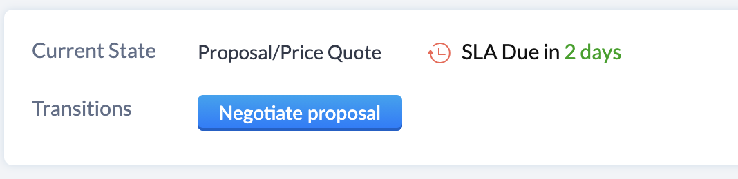 Now, let us see how it gets executed. Here is a record in the "Proposal/Price Quote" state, and on top of that, you can see "SLA Due in 5 days". If this record stays here for more than five days, it will be escalated, and the custom SLA actions get executed.