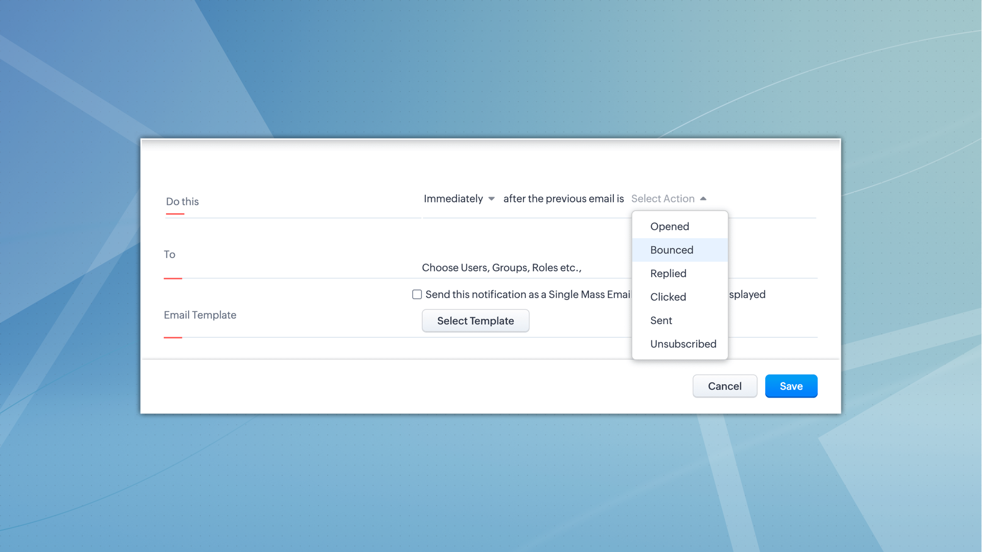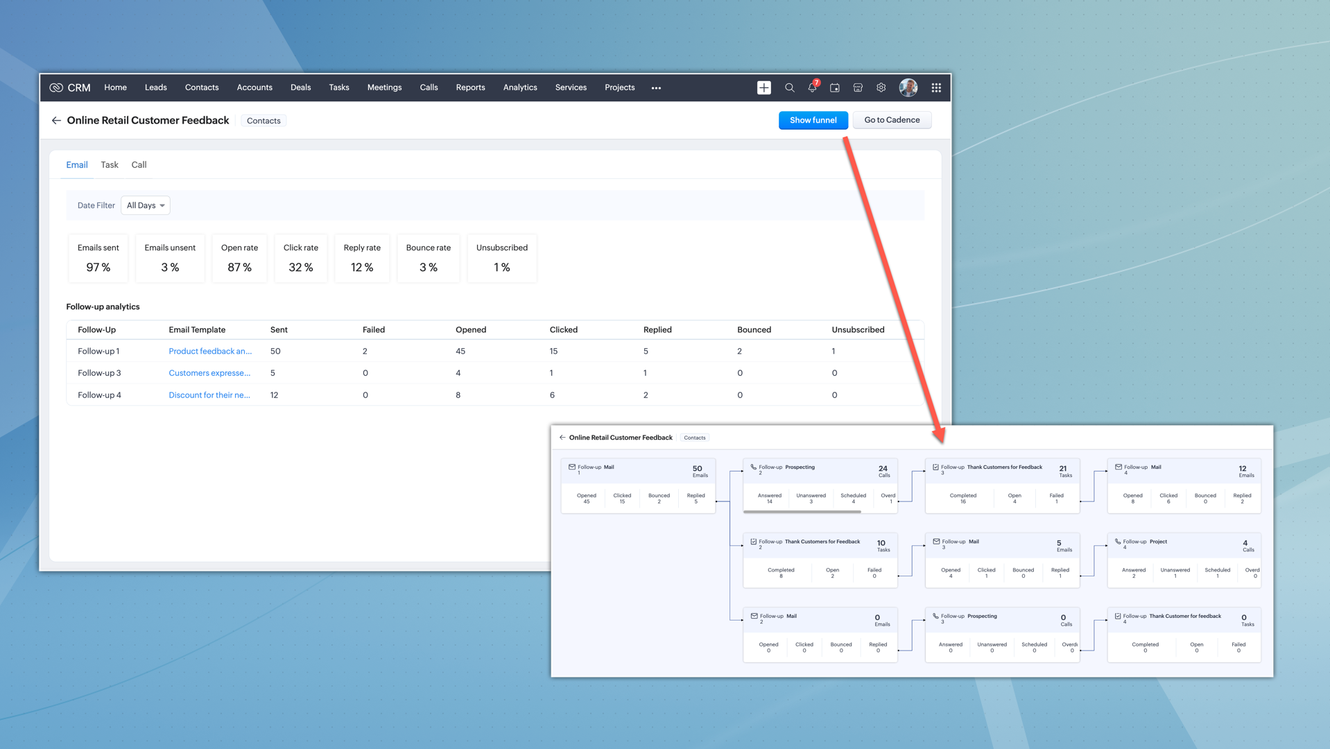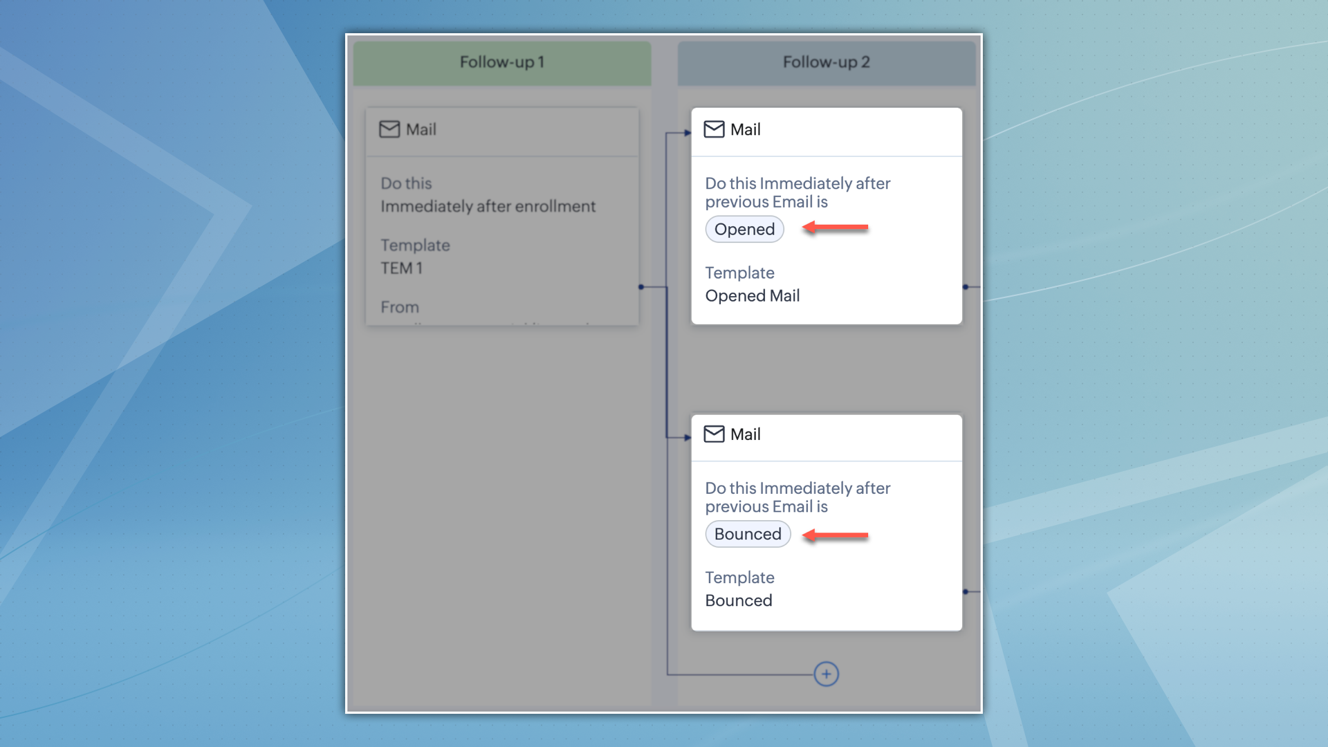 The successive follow-ups within a cadence can be intricately configured based on the actions taken on the previous follow-up. For instance, if an email in the first follow-up is opened or clicked, you can set the subsequent follow-up to be a personalized call or a task, depending on the customer's interaction.