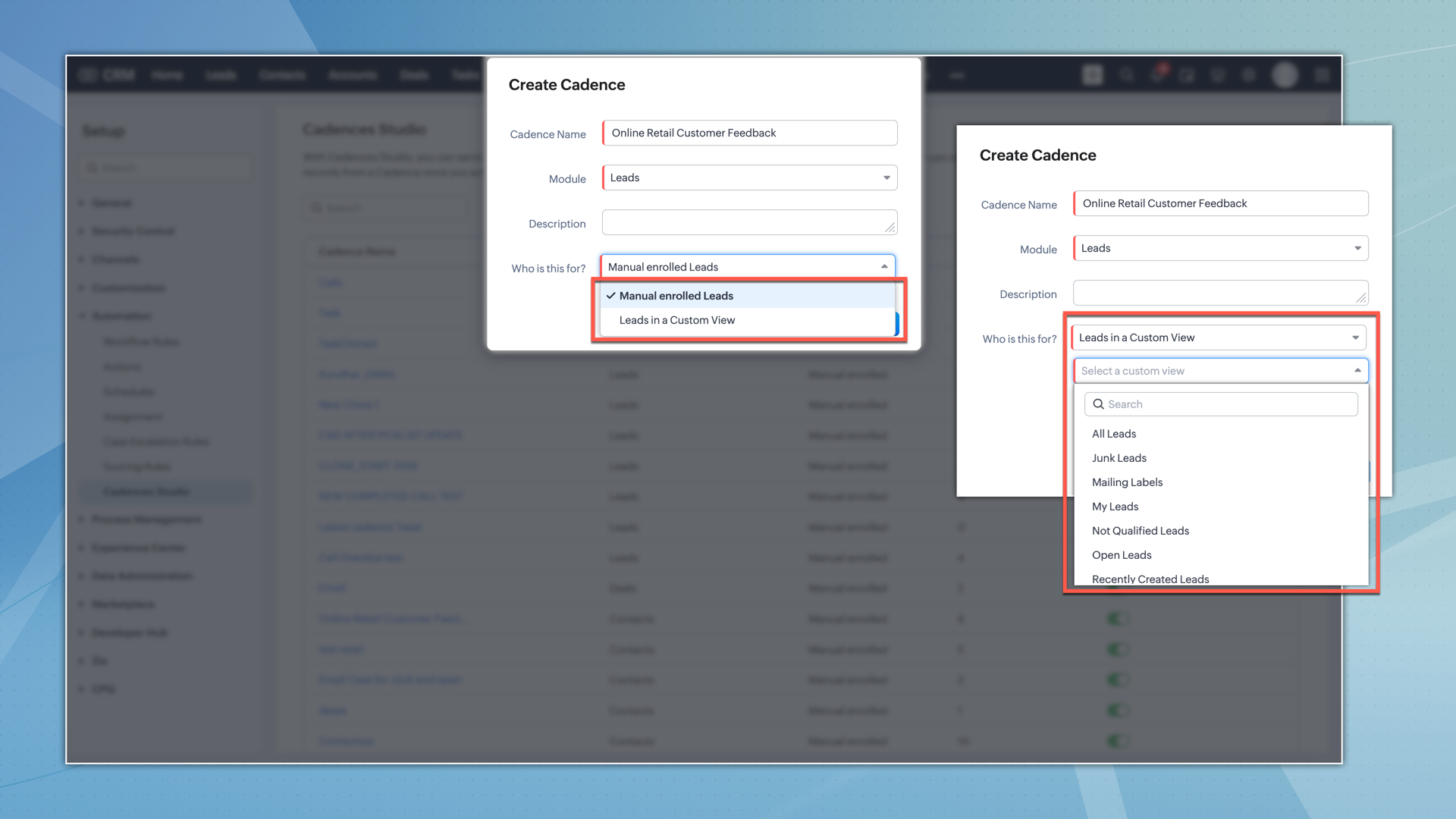 In summary, Cadences empower you to automate and personalize lead engagement, driving efficiency and effectiveness in your CRM strategy, and ultimately fostering stronger customer relationships and enhanced business growth.