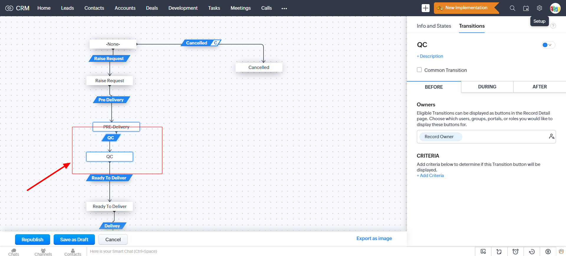 or on click of the QC show the alert message  site ready ness  field up load on clik also once they filled only move to to next transition .