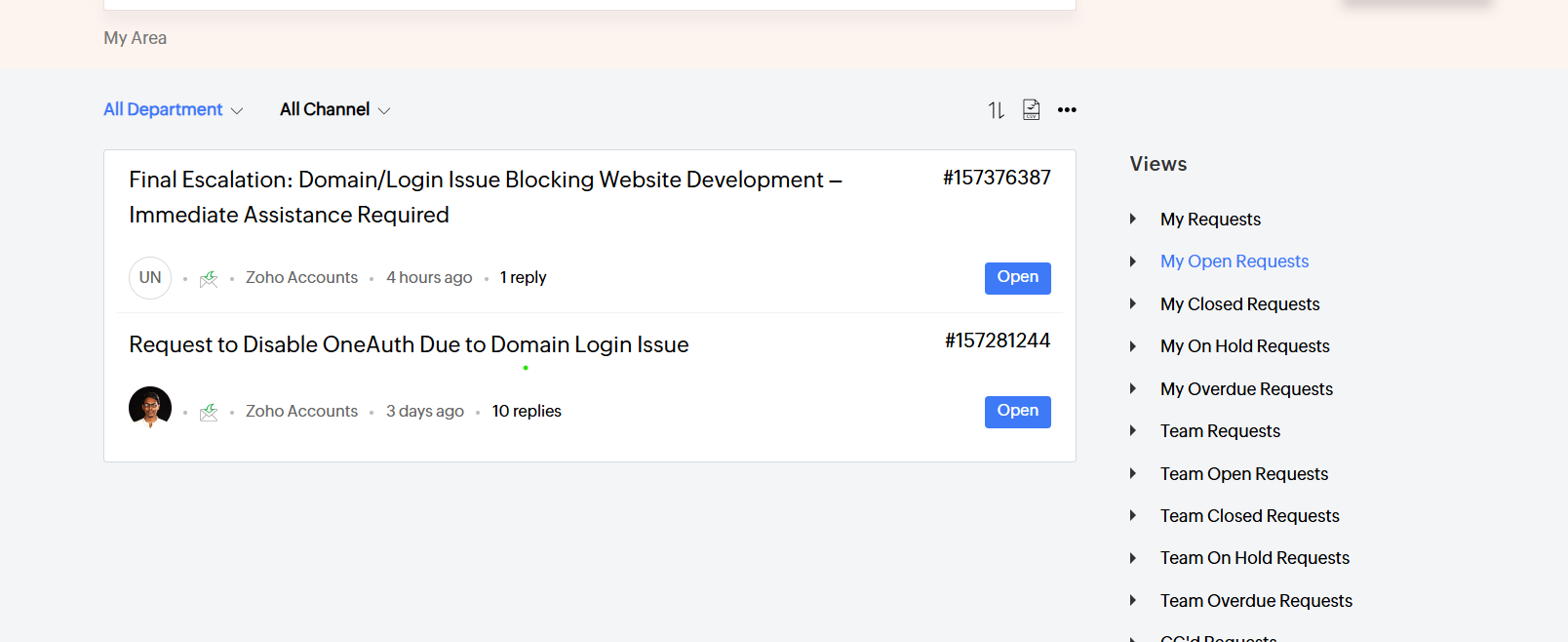 I am writing to escalate a critical issue related to my domain and login access, which has not been resolved despite multiple follow-ups with the support team.