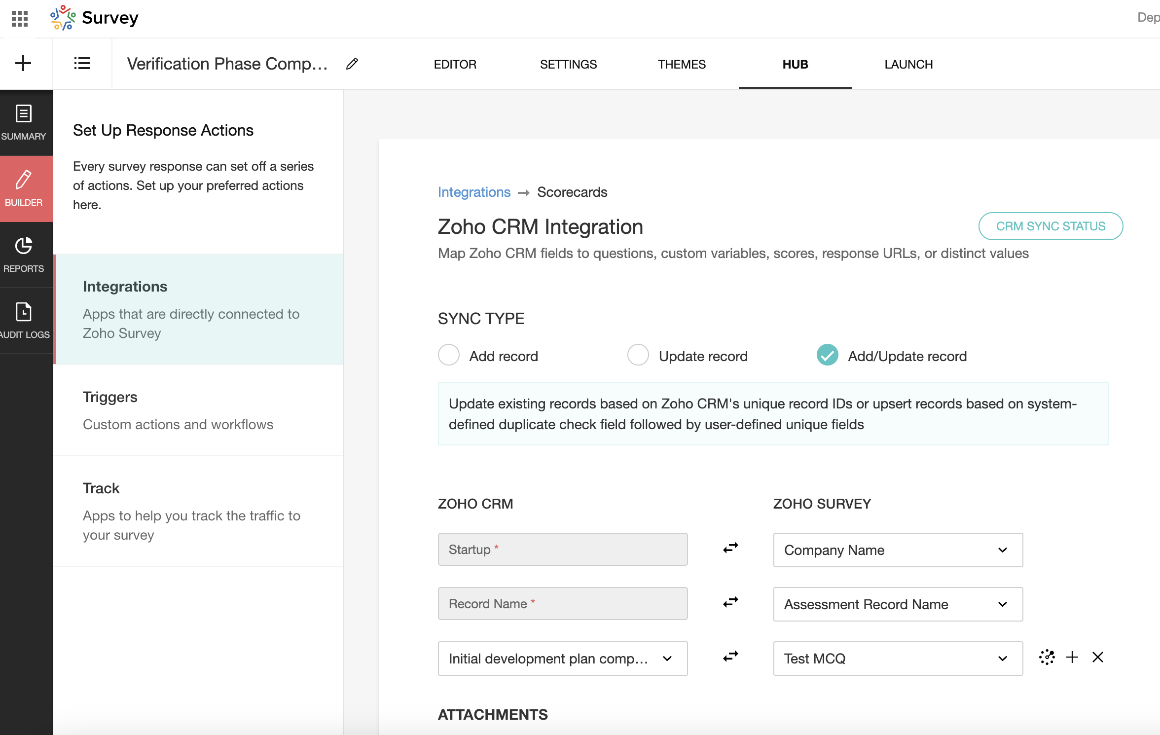 See attached screenshot. What does Zoho Survey software use as unique ID in this case? "Company name" and "Assessment record name" survey form fields are currently single line text input fields.