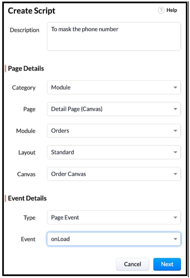 // Tooltip for images var ignitionImage = ZDK.UI.getElementByID('iImage') ignitionImage.addToolTip({ text: 'Ignition System' }); var guageImage = ZDK.UI.getElementByID('gImage') guageImage.addToolTip({ text: 'Guages and Meters' }); log(category_name); // Visibility of Images if (category_name == "Gauges and meters") { ignitionImage.setVisibility(false); } else if (category_name == "Ignition system") { guageImage.setVisibility(false); } // Style textbox var elem = ZDK.UI.getElementByID('Section') elem.addStyle({ 'background-color': 'blue', color: 'white', 'border-radius': '40px' }) //Mask phone Number var user = ZDK.Apps.CRM.Users.fetchById($Crm.user.id); log(user); var field_obj = ZDK.Page.getField('Phone_Number'); log(field_obj.getValue()); log("Profile name of the user is "+ user.profile.name); if(user.profile.name != 'Administrator') { field_obj.mask({ character: '*', length: 5, reverse: true }); } var category_name = ZDK.Page.getField('Category').getValue(); |