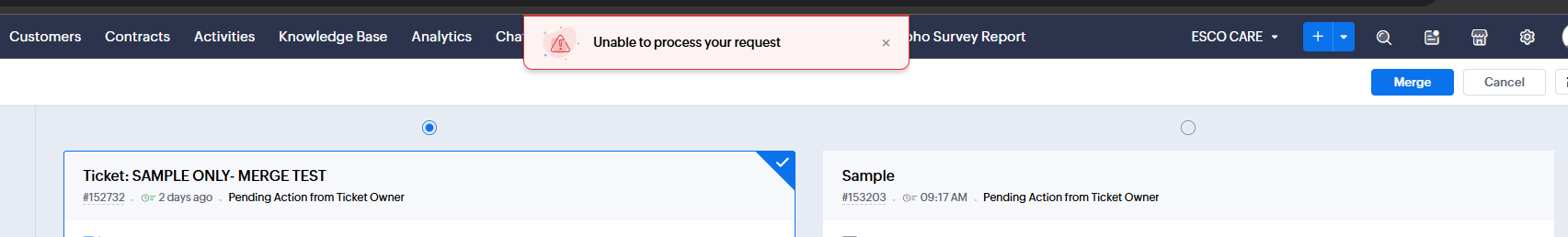 • Ticket Merge Error