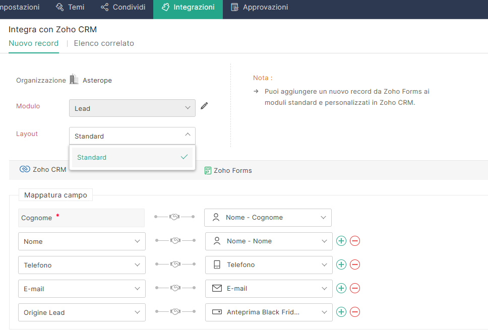 I have this issue where Zoho Forms integration with Zoho CRM is only showing the Standard Lead Layout. But in my CRM I've created an alternative layout.