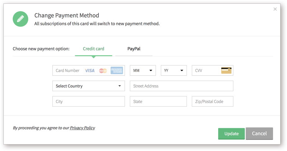 登録したクレジットカードの詳細情報を変更するには、以下の手順を実施します: