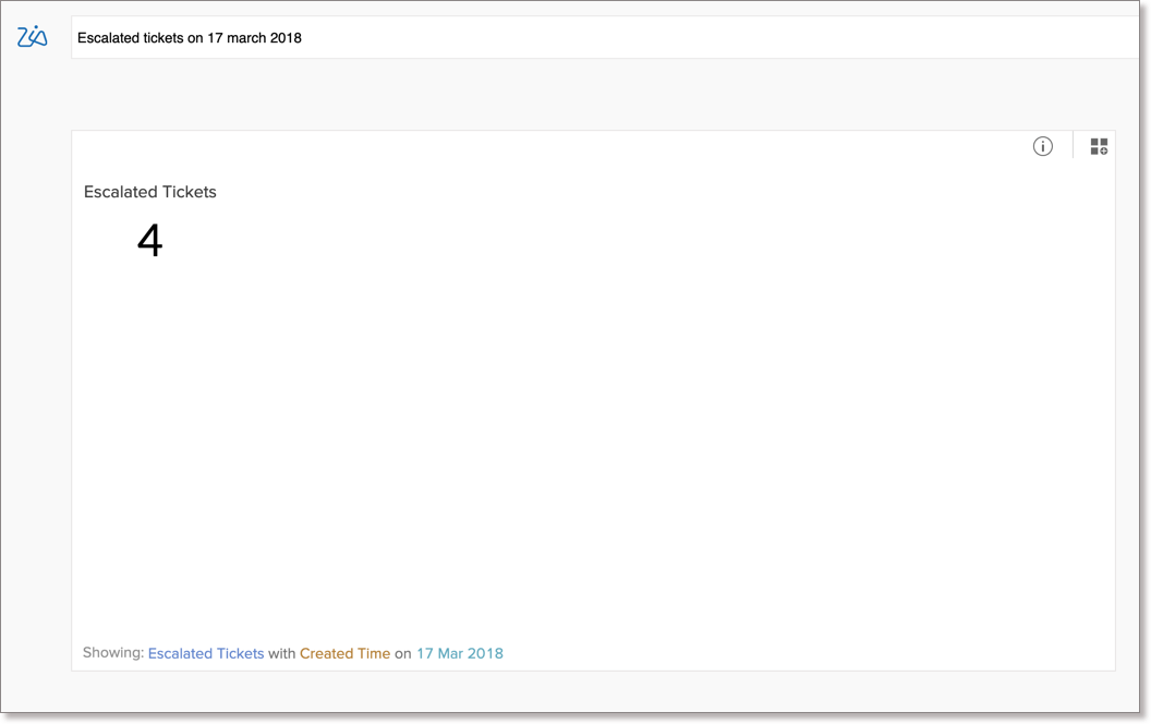 「2019」、「March 2018」、「12/3/2019」などの特定の日付でデータを抽出できます。 以下の質問の例では、2018年3月17日にエスカレーションが行われた問い合わせのデータが表示されます。