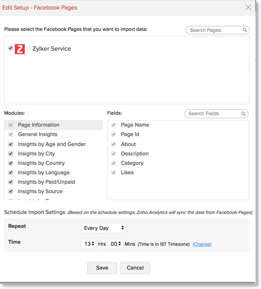 はい。FacebookページとZoho Analytics間の同期設定を編集できます。同期設定を編集できるのは、詳細分析コネクターを設定した管理者のみです。