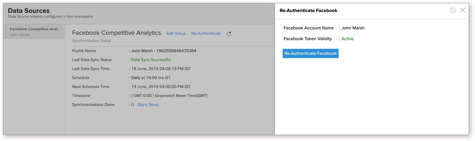 Facebookアカウントを再認証するには、以下の手順を実施します: