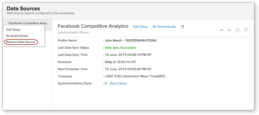 その2:初回のデータのインポートの完了後、FacebookとZoho Analyticsの間のデータ同期中に問題が生じて同期を完了できない旨のメールを受け取った場合は、内部エラーによる一時的な問題の可能性があります。連続して5回失敗すると、インポートのスケジュール処理が停止します。