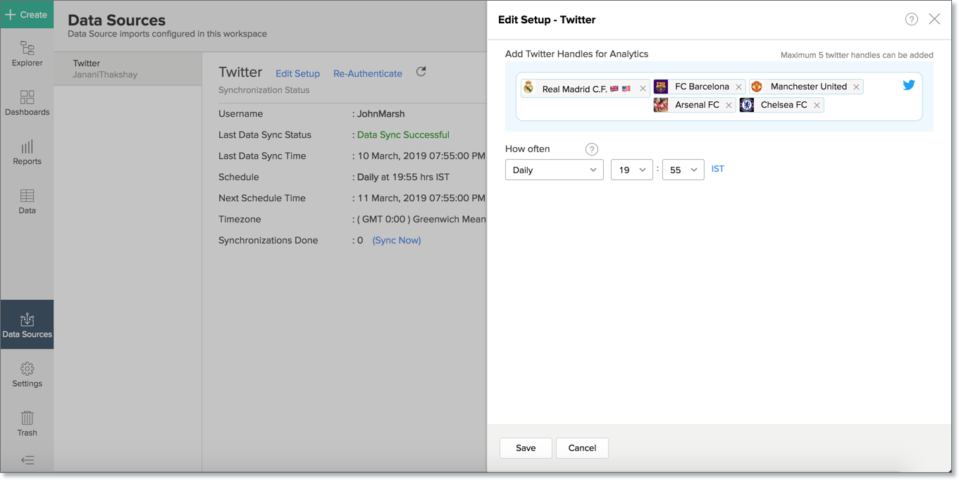 はい。TwitterとZoho Analyticsの間の同期をすぐに実行できます。