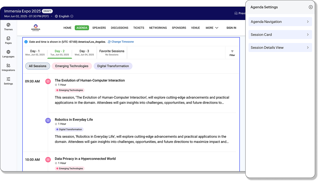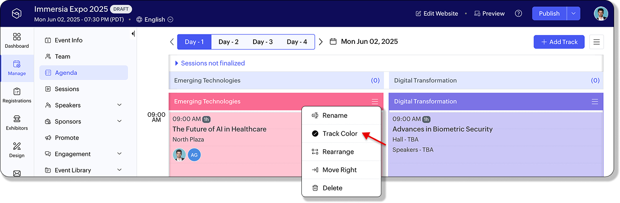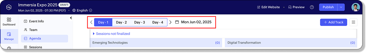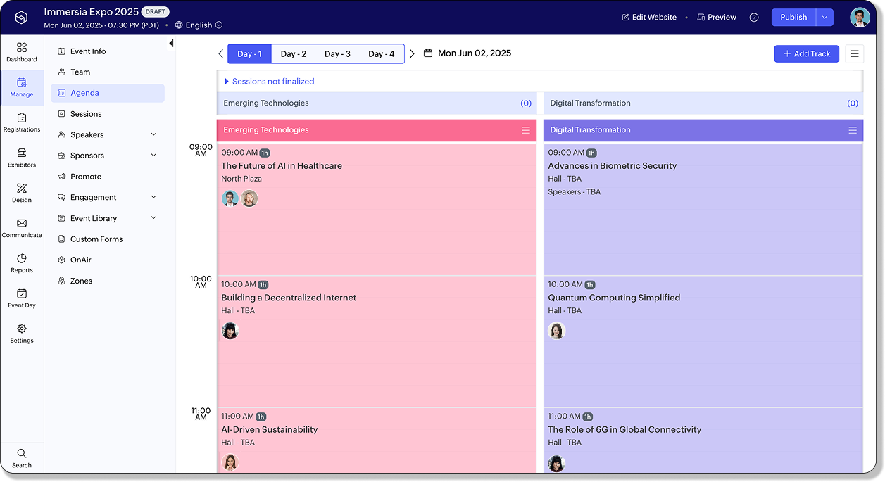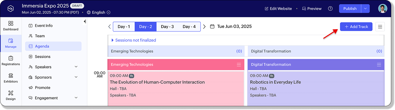 新規トラックには共通セッションが自動的に引き継がれ、イベント全体で一貫した体験が提供されます。