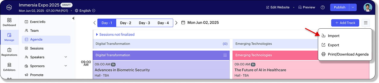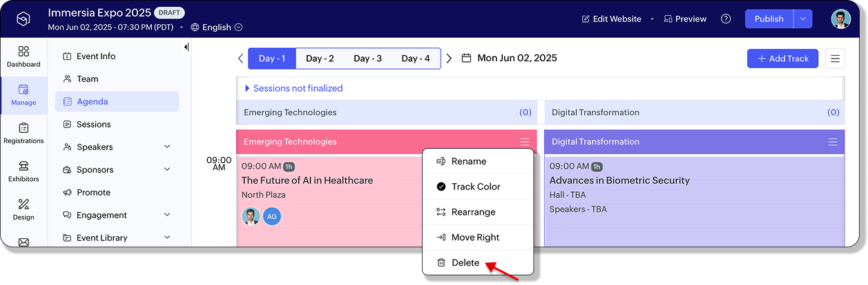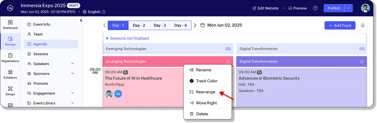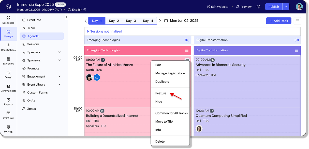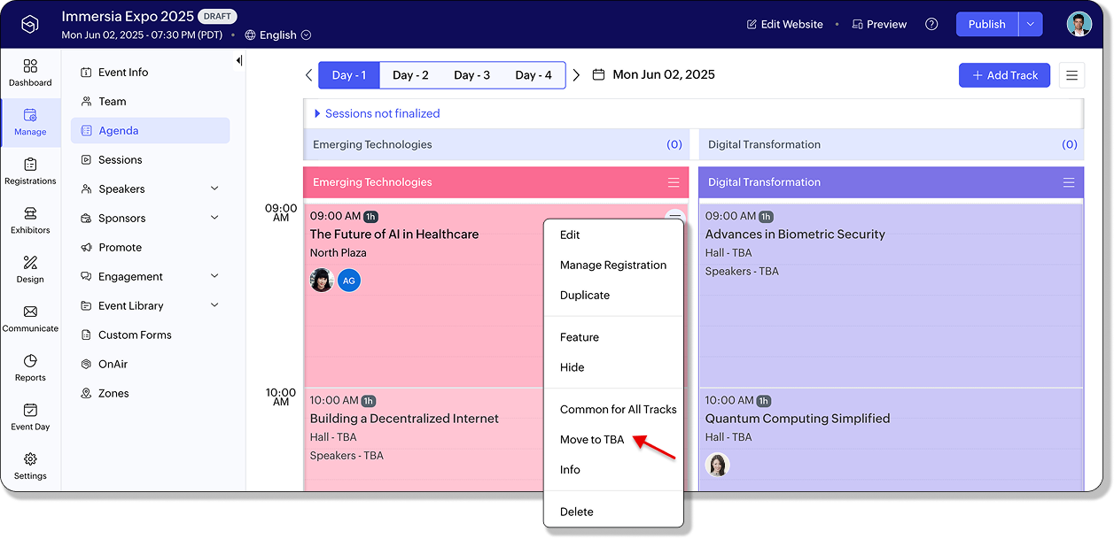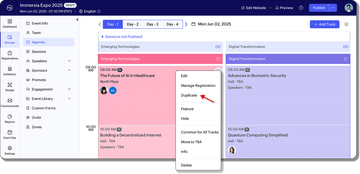 新規トラックには共通セッションが自動的に引き継がれ、イベント全体で一貫した体験が提供されます。