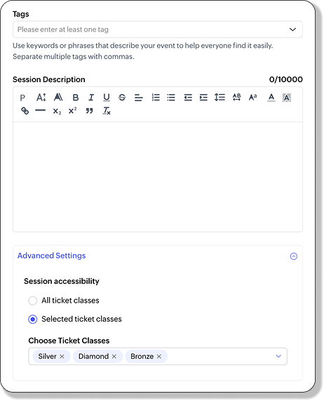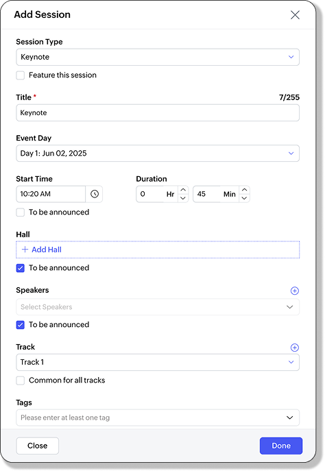 すべての参加者に有益なセッション(基調講演など)の場合、すべてのトラックに共通で設定できます: