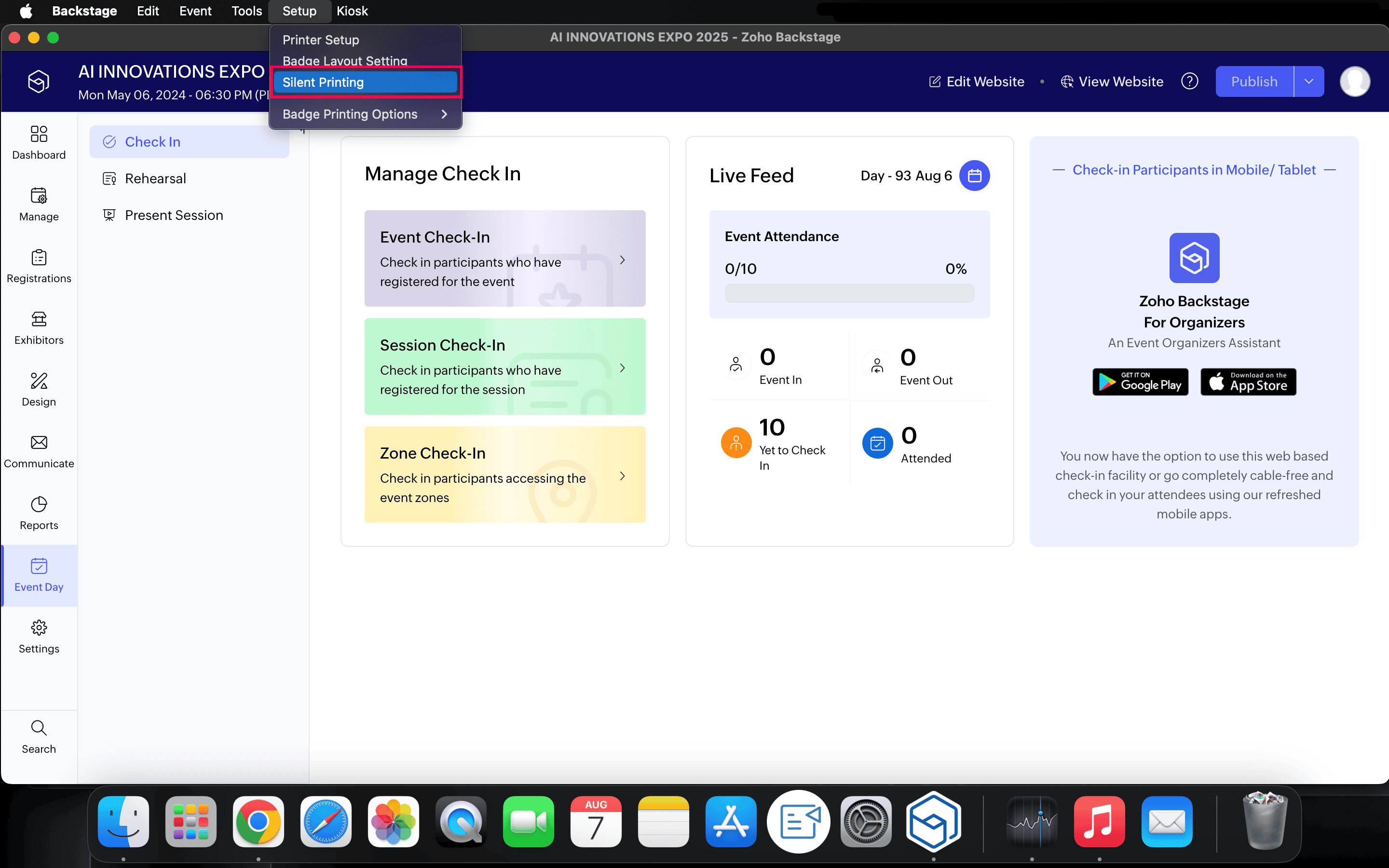 1. DockからEvent Day > Check-in > Event Check-inに移動します。