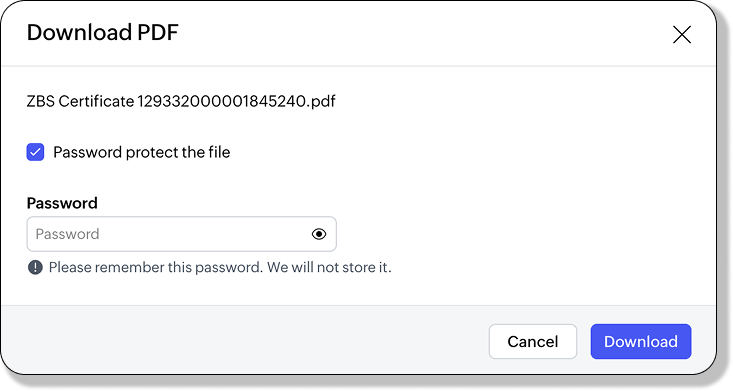 必要に応じて、証明書をパスワード保護付きPDFとしてダウンロードできます。