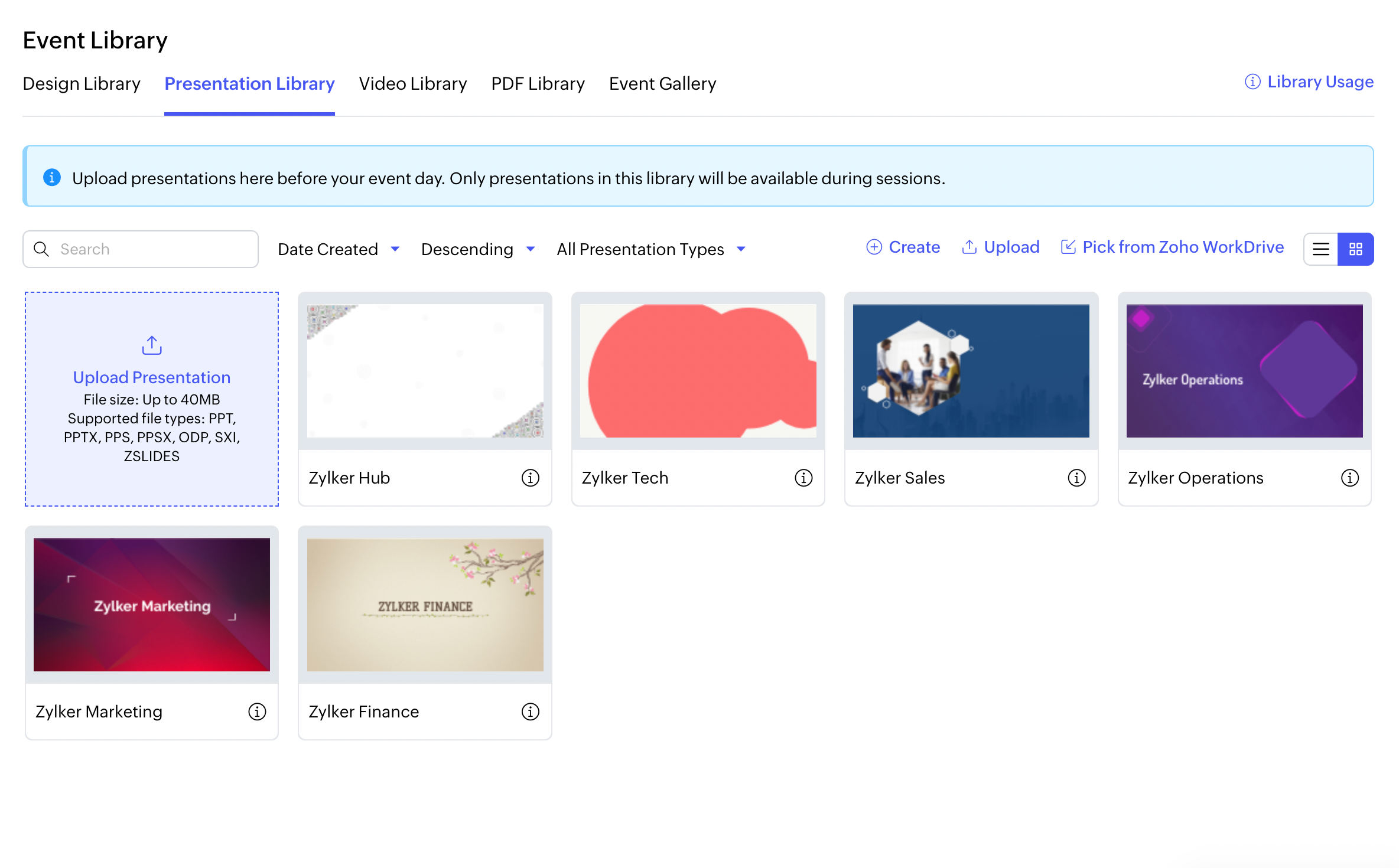 3. プレゼンテーションライブラリでは、プレゼンテーションのプレビュー、ダウンロード、削除も行えます。