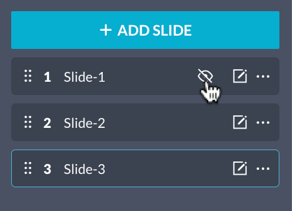 1. 隠すのアイコン[]をクリックします。対象はSlidesタブ内のスライドです。スライドは表示されなくなります。