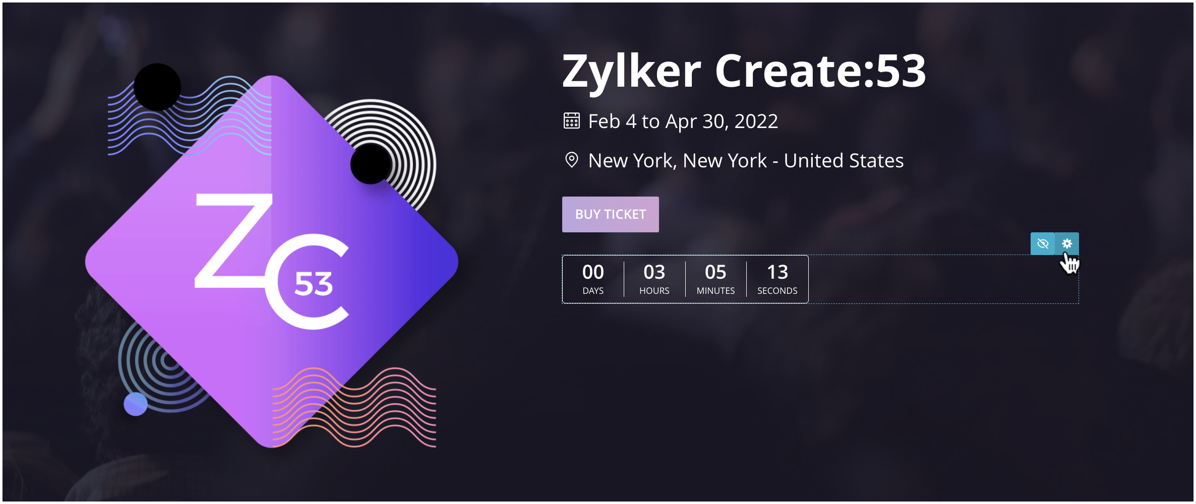 1. ヒーローセクション内のカウントダウン要素に対して設定アイコンをクリックします []。カウントダウン設定パネルが表示されます。