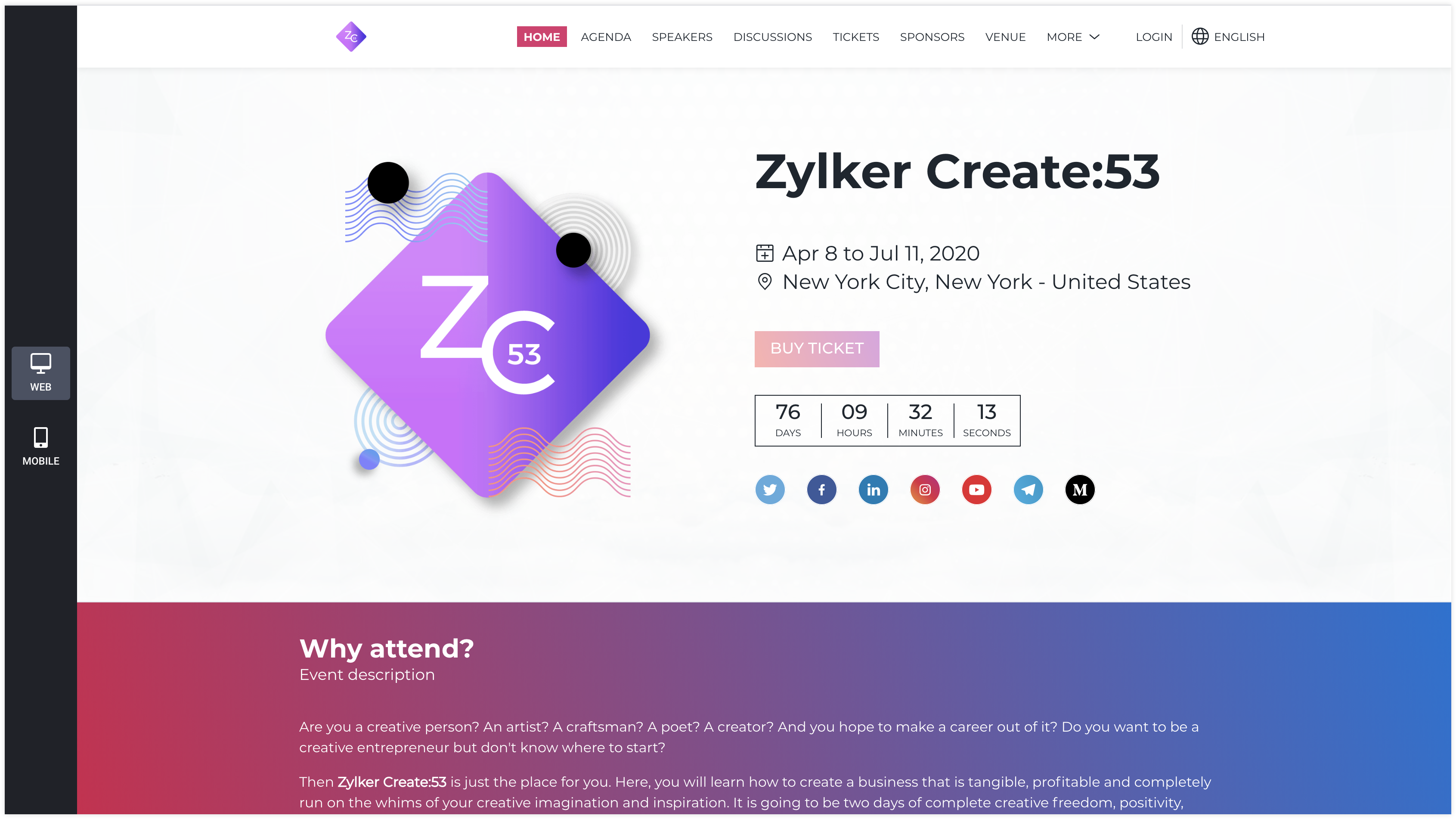 マイクロサイトを公開して、誰でもイベントについて知ることができ、ユーザー登録や詳細確認が可能になります。