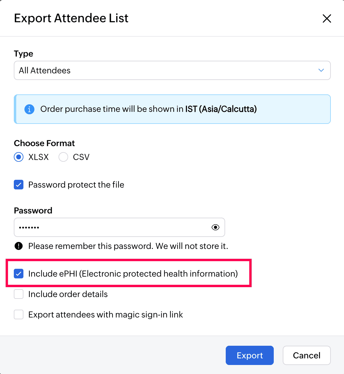 4. 電子的に保護された健康情報(ePHI)と個人情報を含めるチェックボックスを選択します。