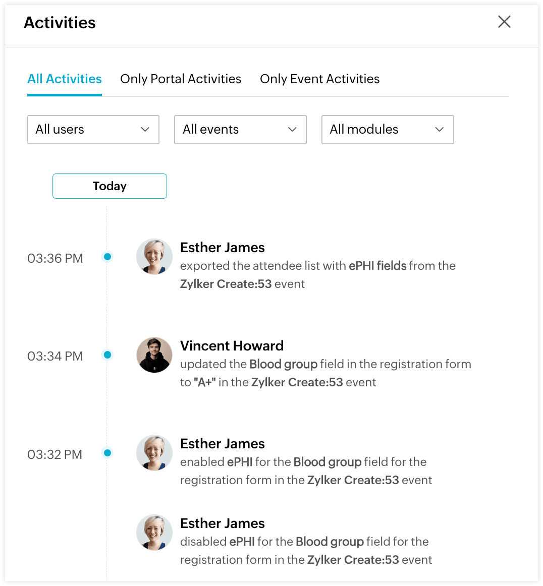 ポータルの操作ログを表示することでHIPAA準拠の詳細な監査トレイルにアクセスします。機密データに対するすべての操作を効率的に追跡、監視します。フォームの回答に対する参加者による編集もアクティビティログに記録されます。