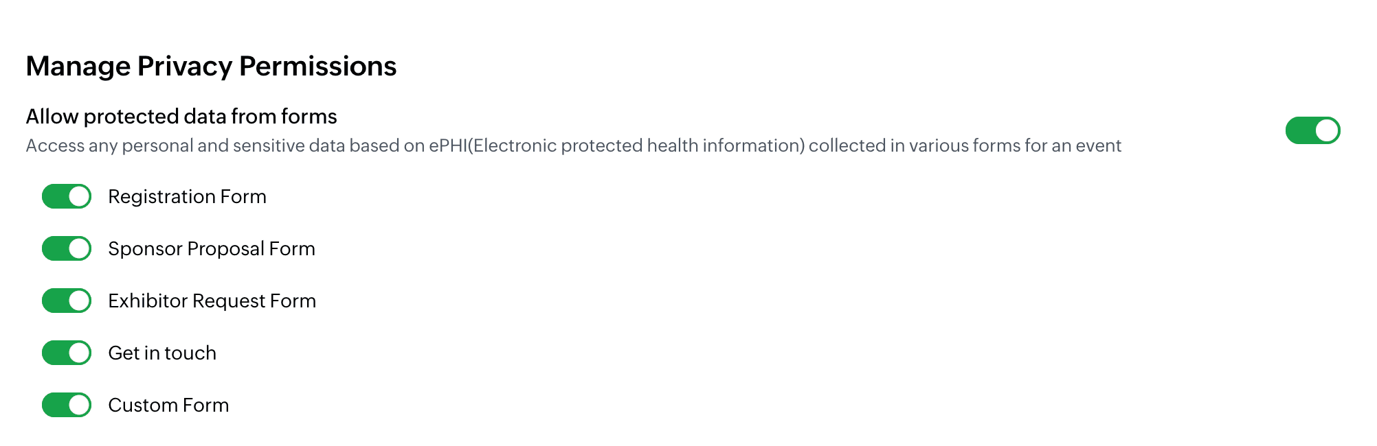 5. Event スタッフおよび他のカスタム役割については、保護されたデータのトグルからのフォームを有効/無効にします。