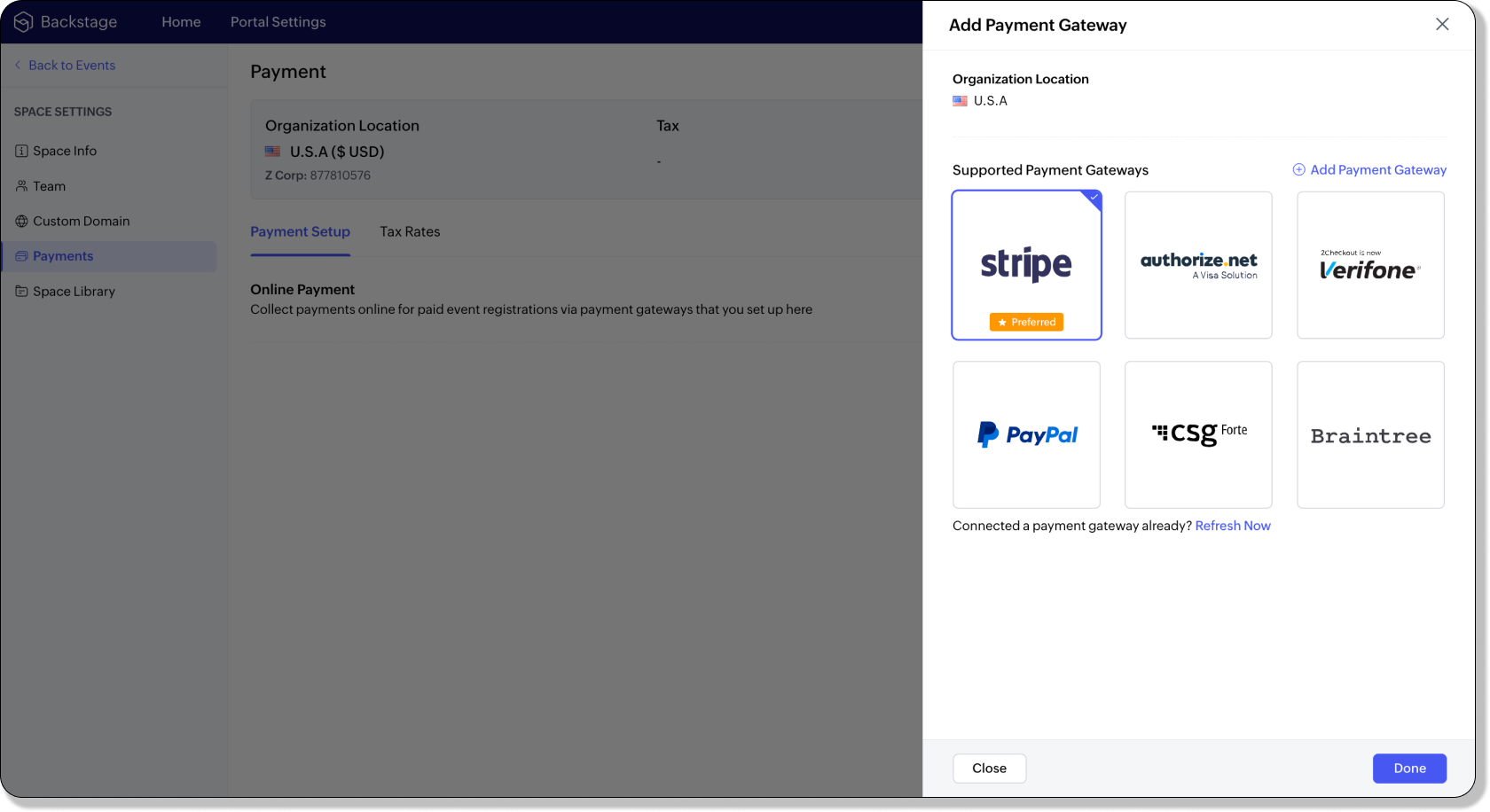 3. 支払い:Spacesは、個人のSpaceレベルで決済サービス(PG)を設定する柔軟性を提供します。これにより、イベントや視聴者の特定のニーズに対応するために決済方法をカスタマイズできます。