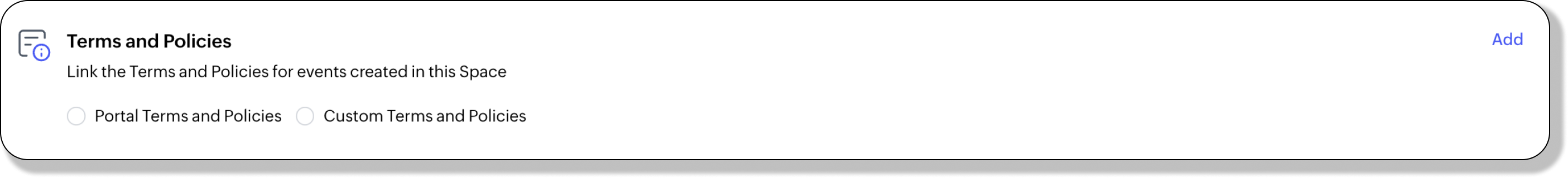 6. 条件とポリシー:このセクションでは、特定のスペースに対するイベントの条件とポリシーを設定できます。 これにより、出席者に重要なガイドラインと法的情報を伝えることができます。 出席者が情報を把握できるように、サービス規約、プライバシーポリシー、その他の関連コンテンツを追加してください。
