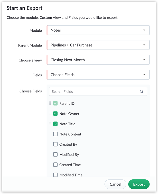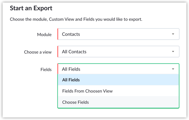 2. 選択した表示からの項目: 選択した表示で利用可能な項目のみをエクスポートします。