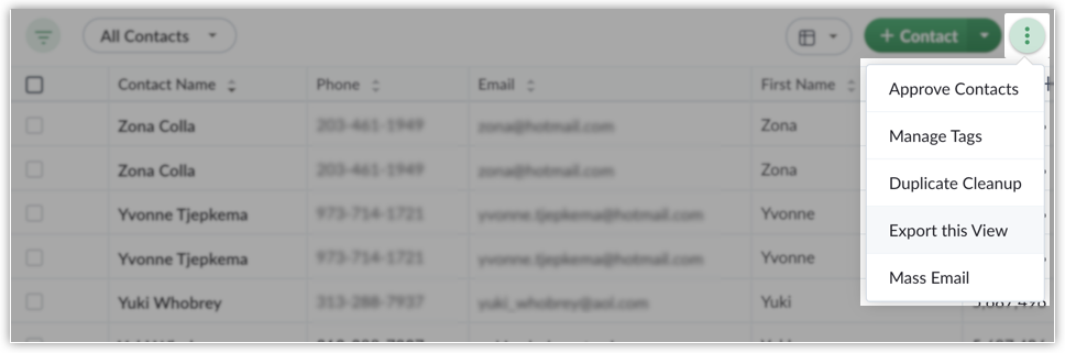 Biginのタブは、.郵便番号ファイル形式でユーザーがデータをエクスポートし、.CSV形式でアクセスすることを可能にします。例えば、名前、電話番号、住所、メールなど特定の顧客詳細をダウンロードしたい場合、必要な項目だけをダウンロードし、不必要な情報を排除するためにこの機能を使用できます。この機能は効率的で簡潔なレポート作成を支援します。