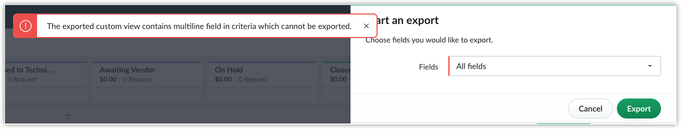 1. クライテリアとして設定された多行テキスト項目を持つカスタムビューはエクスポートできません。
