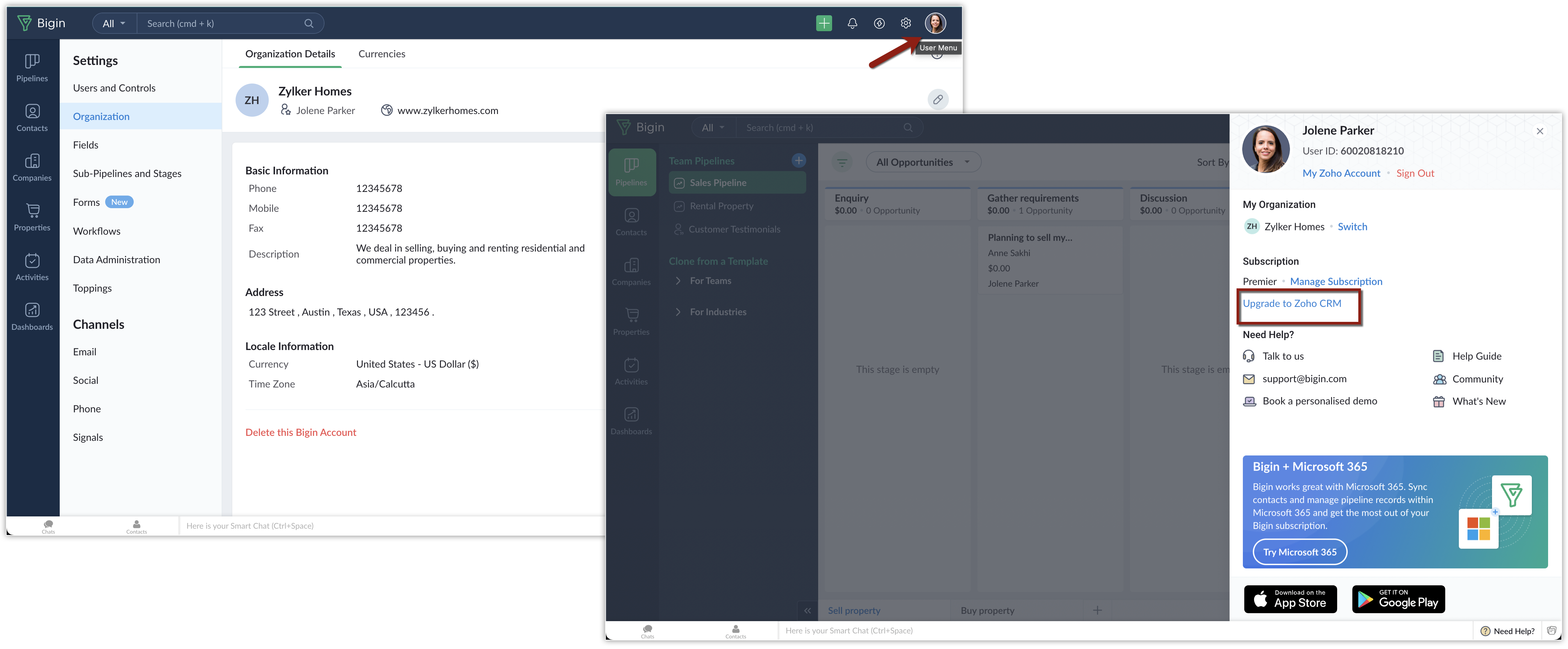 2. この移行中には、Biginで購入した電話番号を含むすべてのアドオンは、Zoho CRMに引き継がれません。必要に応じて、Zoho CRMから購入することができます。