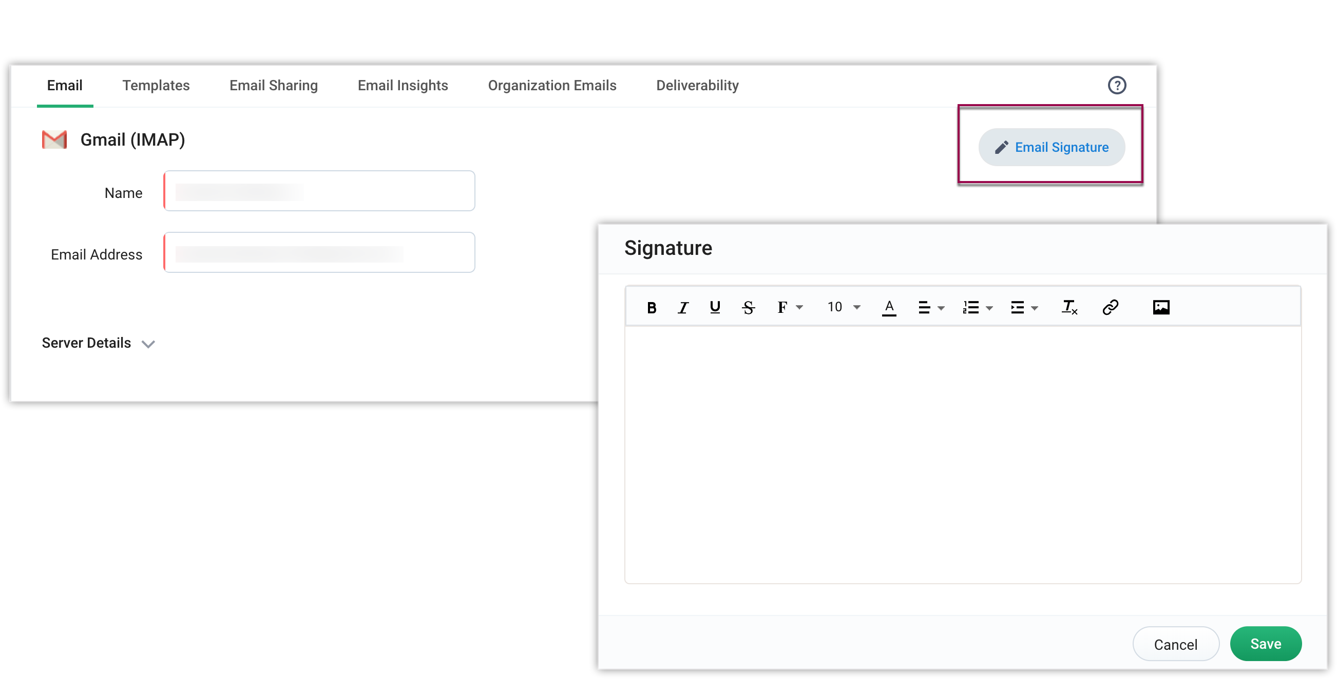 または、Biginでメールアカウントを設定している場合は、メール設定ページから署名を設定することもできます。