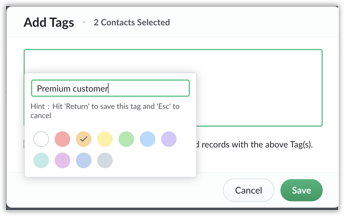 3. タグを追加」ポップアップで、追加したいタグを入力し、タグの色を選択します。