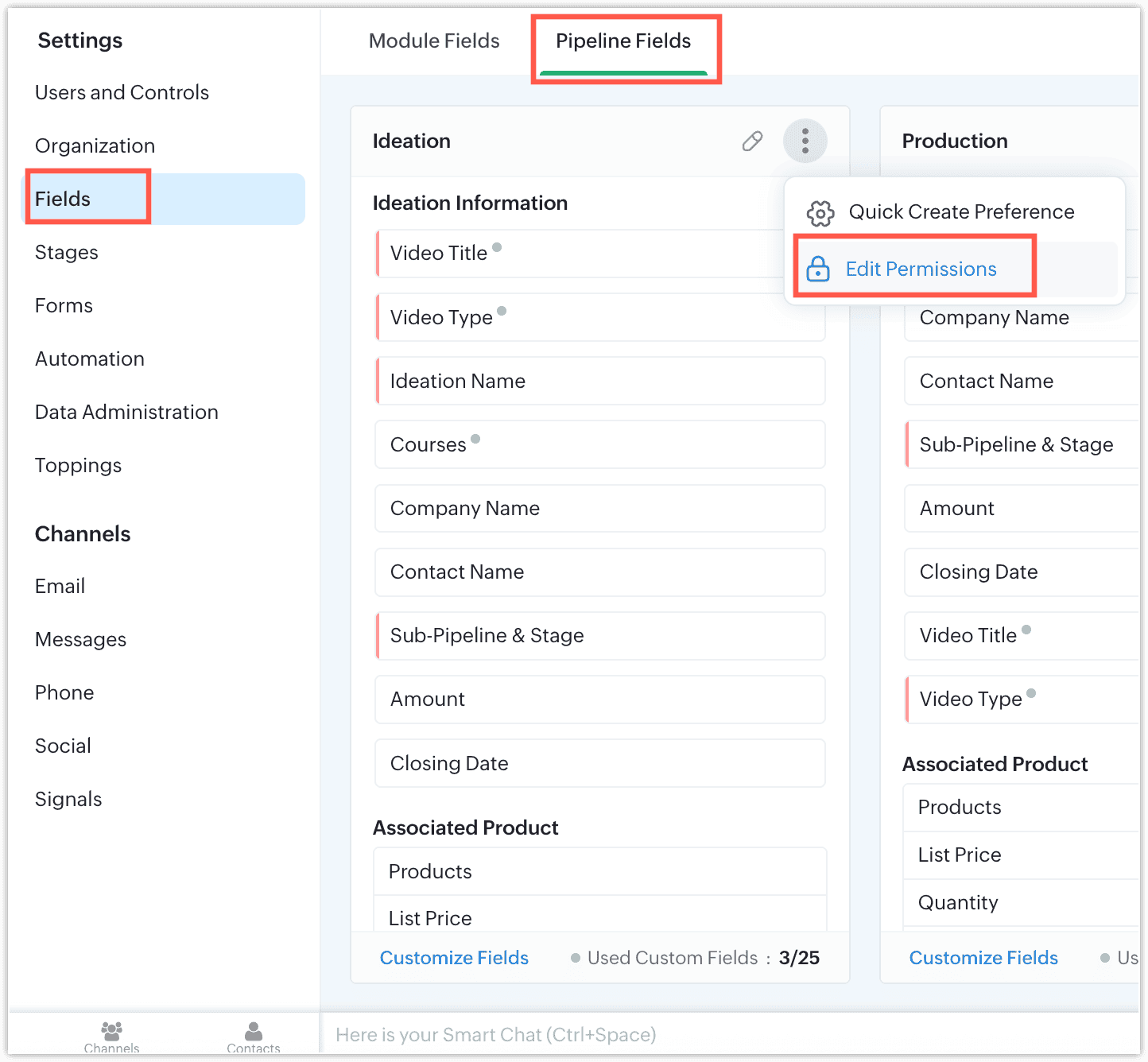 Zoho Biginでは、Team Pipelinesに対して6つの明確な権限レベルが用意されています。