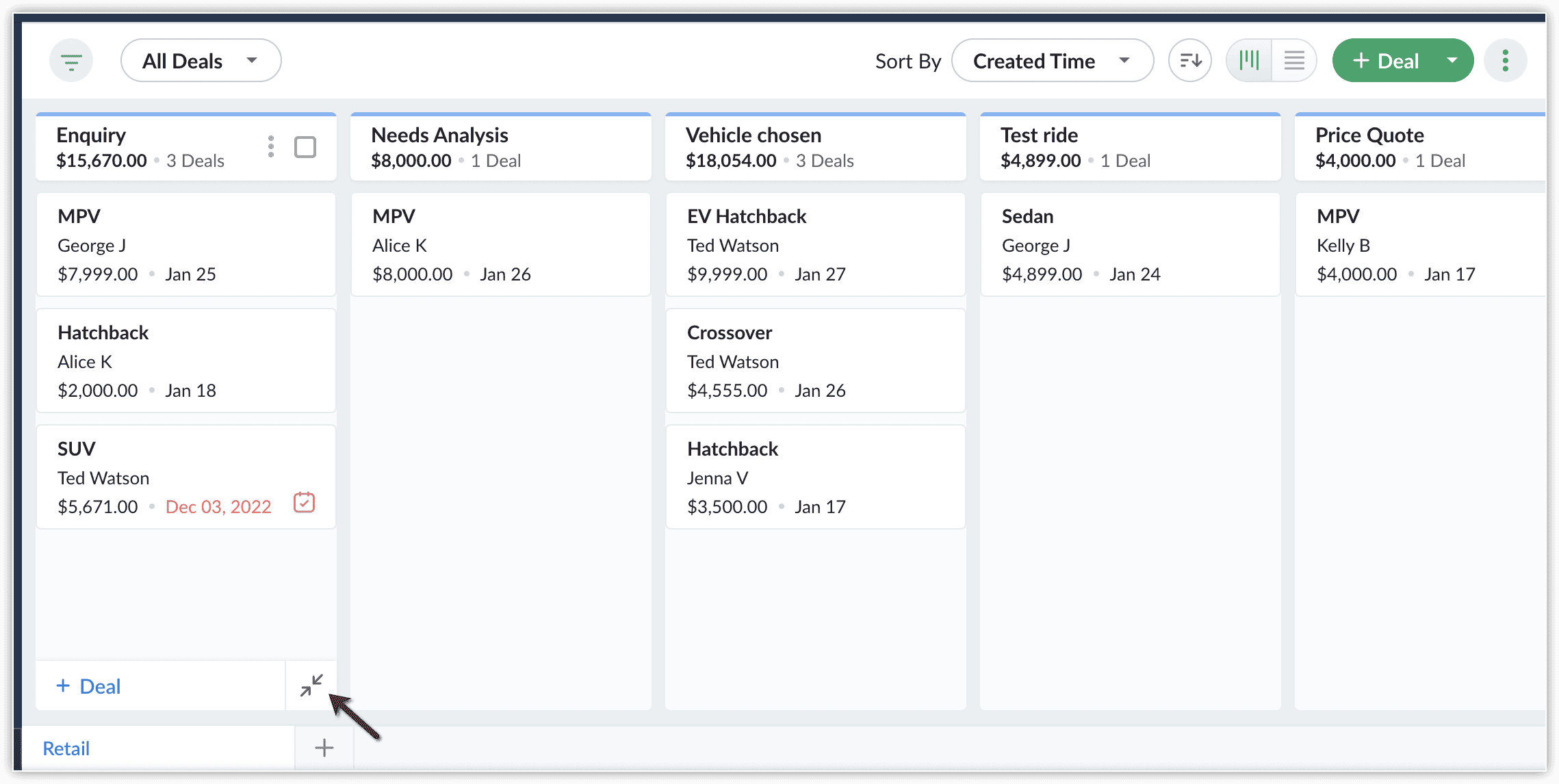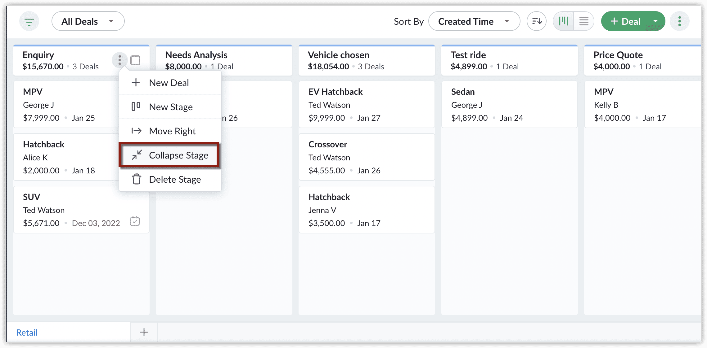 この機能を利用すると、すぐに対応が必要なステージに集中できます。