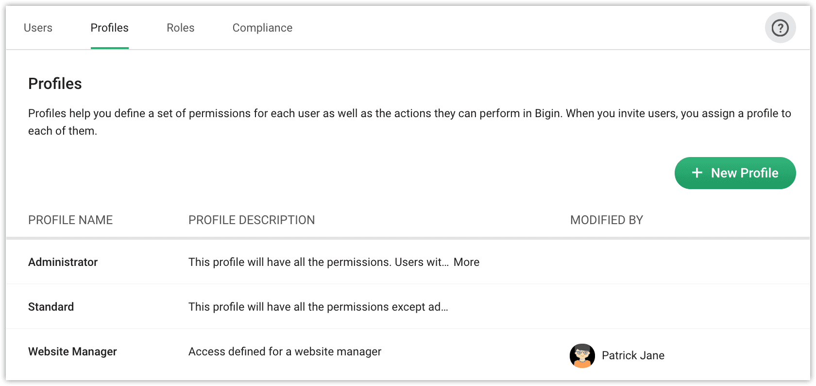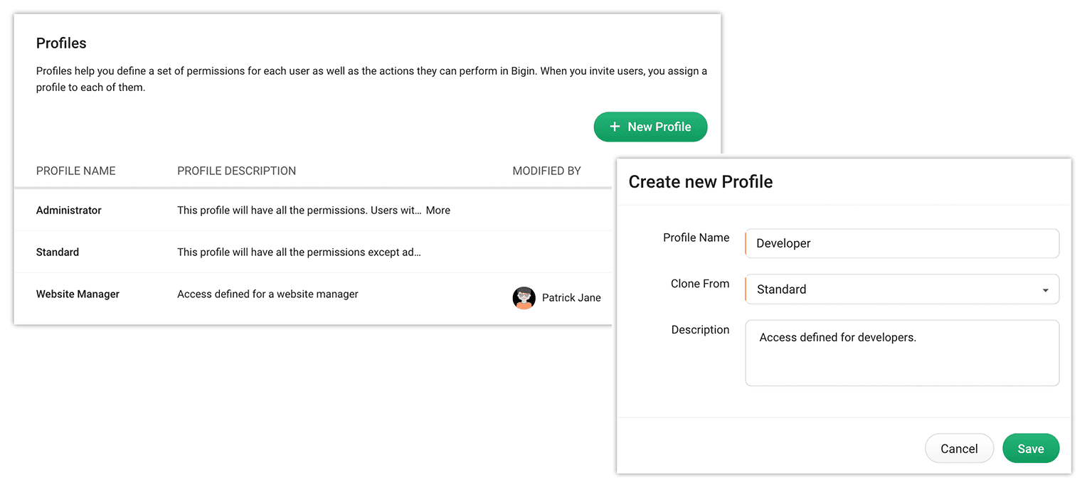 Administrator:すべてのBigin機能へのフルアクセス権。