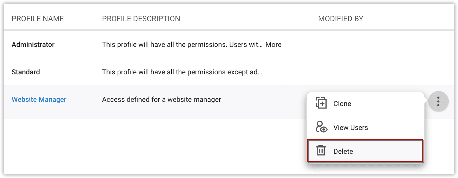 「権限」タブで、権限にカーソルを合わせ、「その他 → 削除」をクリックします。