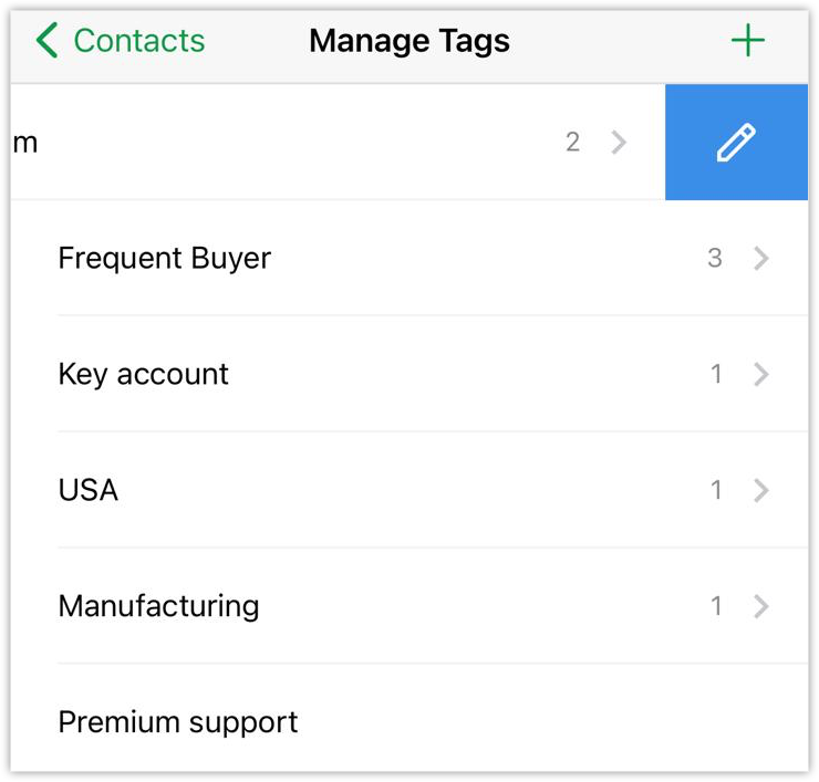 5. 既存のタグを編集するには、編集したいタグに右にスワイプし、編集アイコンをタップします。