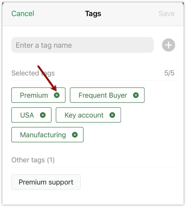 4. タグを追加するには、'+'アイコンをクリックします。タグ名を入力し、保存をタップします。