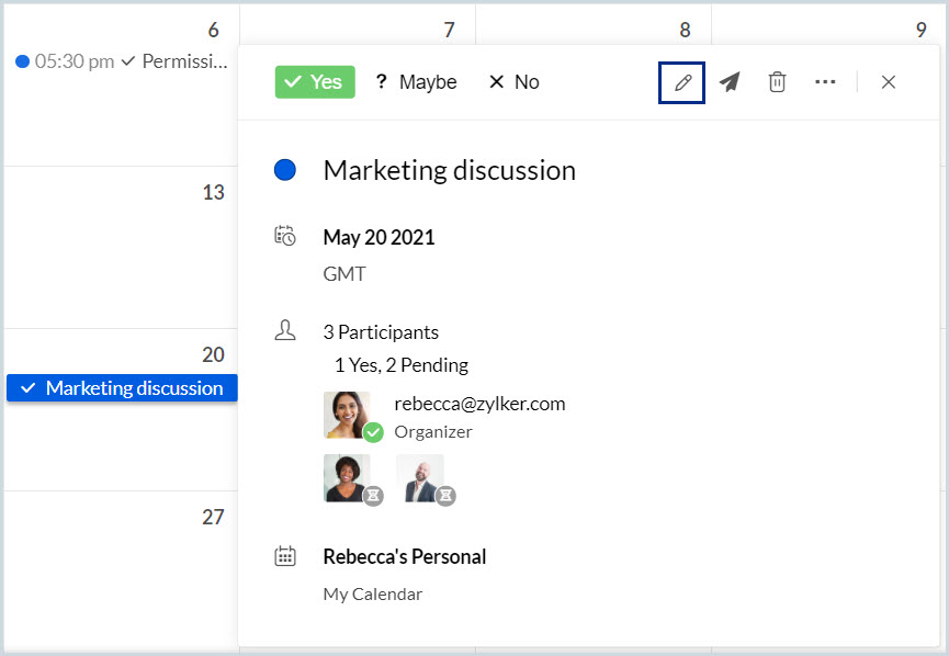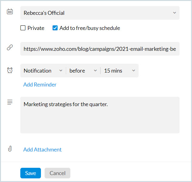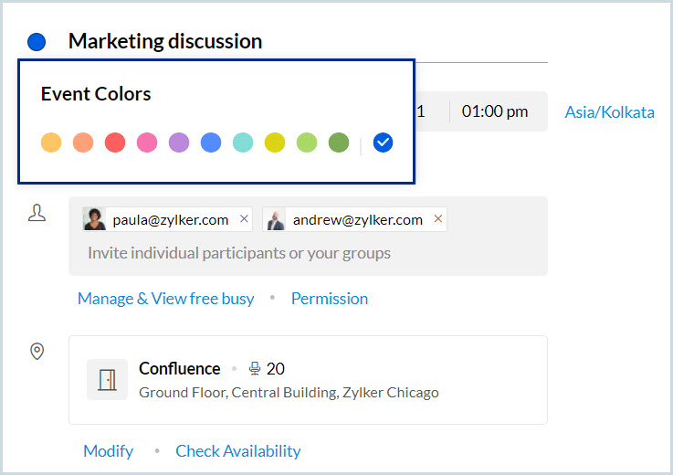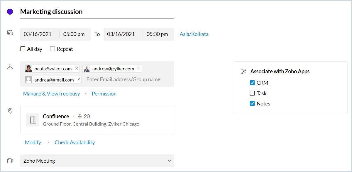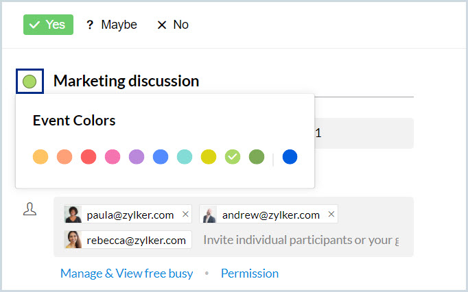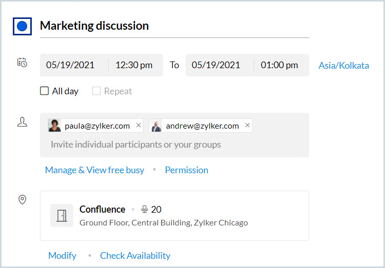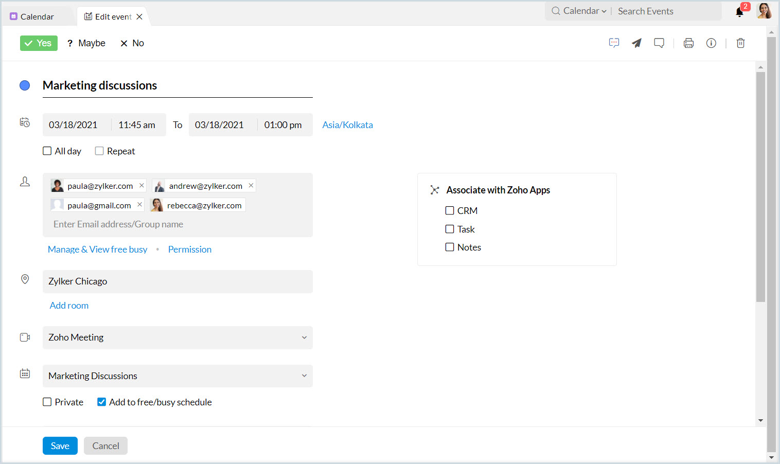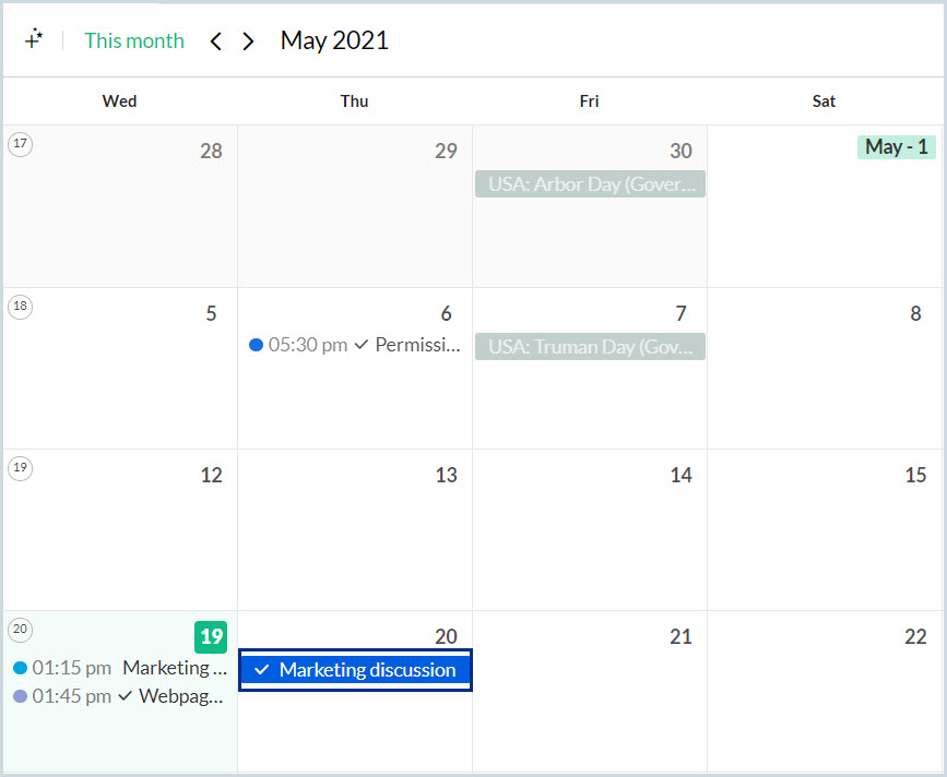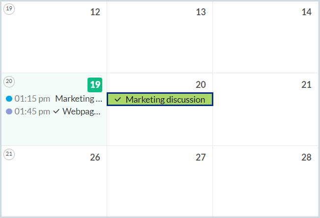 現在の日から2日間の全日イベント、「Marketing Discussion」を作成します。 |