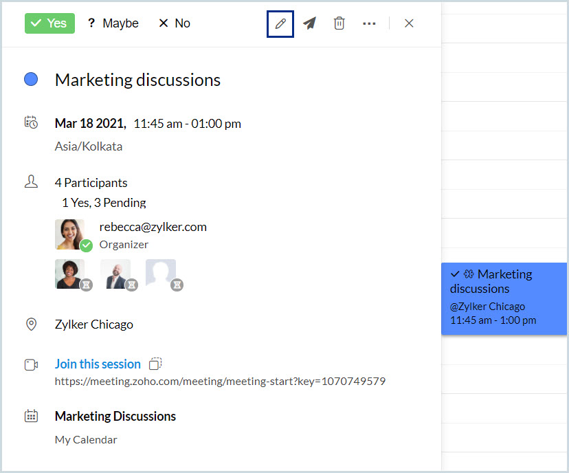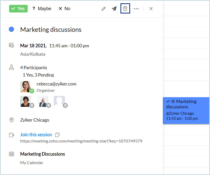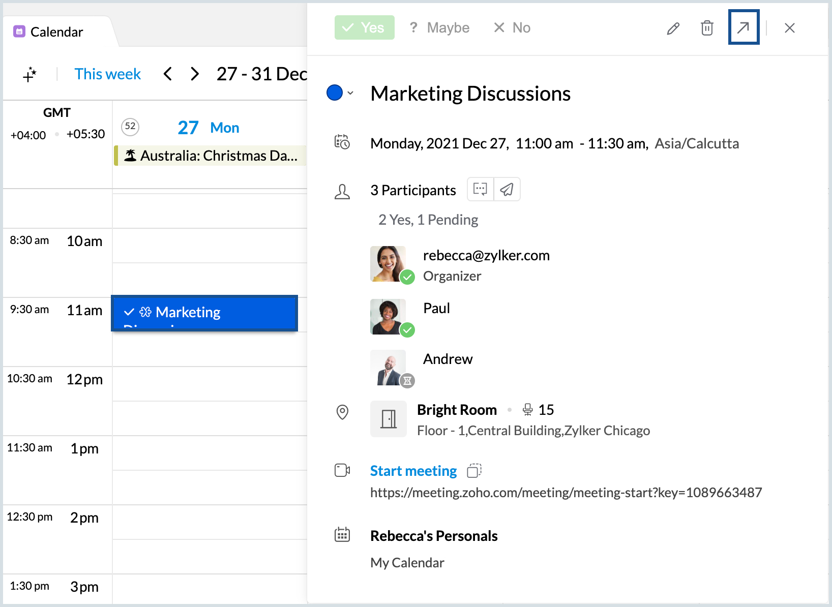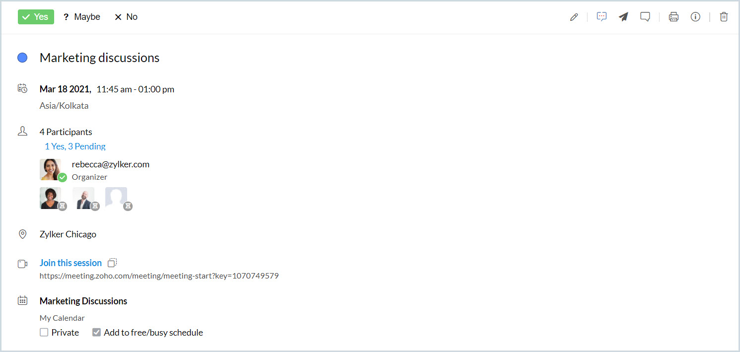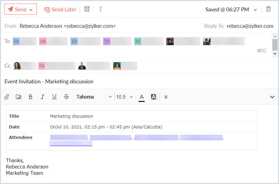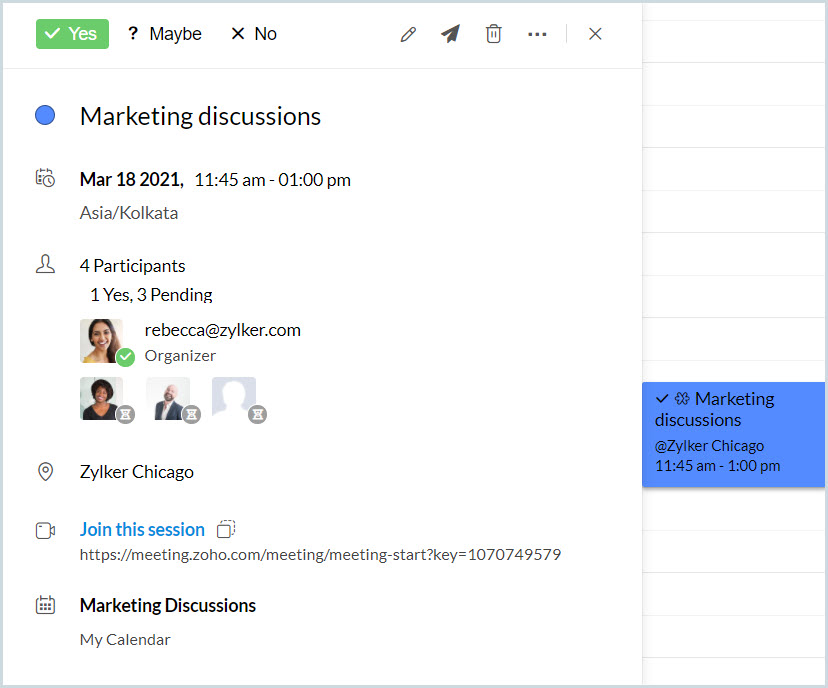 現在の日から2日間の全日イベント、「Marketing Discussion」を作成します。 |