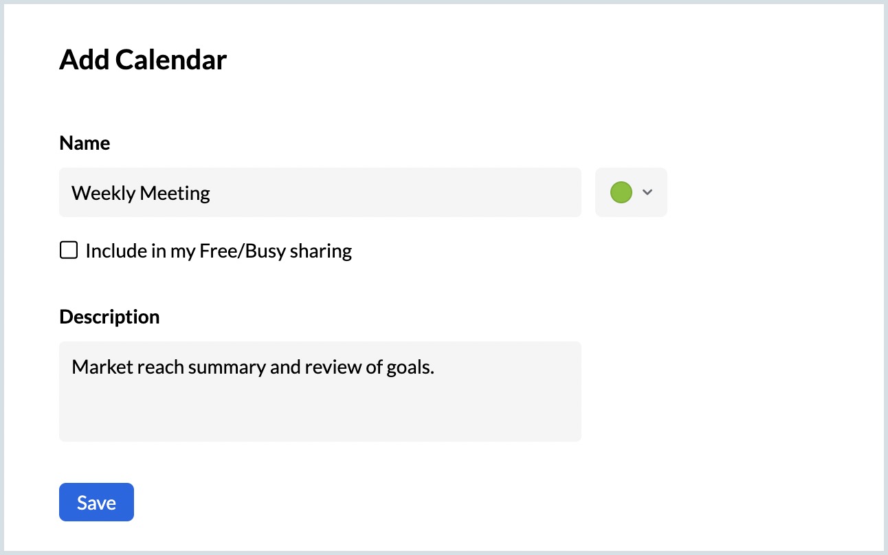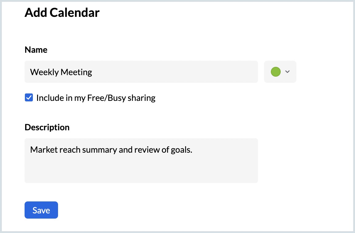 5. カレンダー名前の下にある説明フィールドを使用して、カレンダーに説明を追加します。